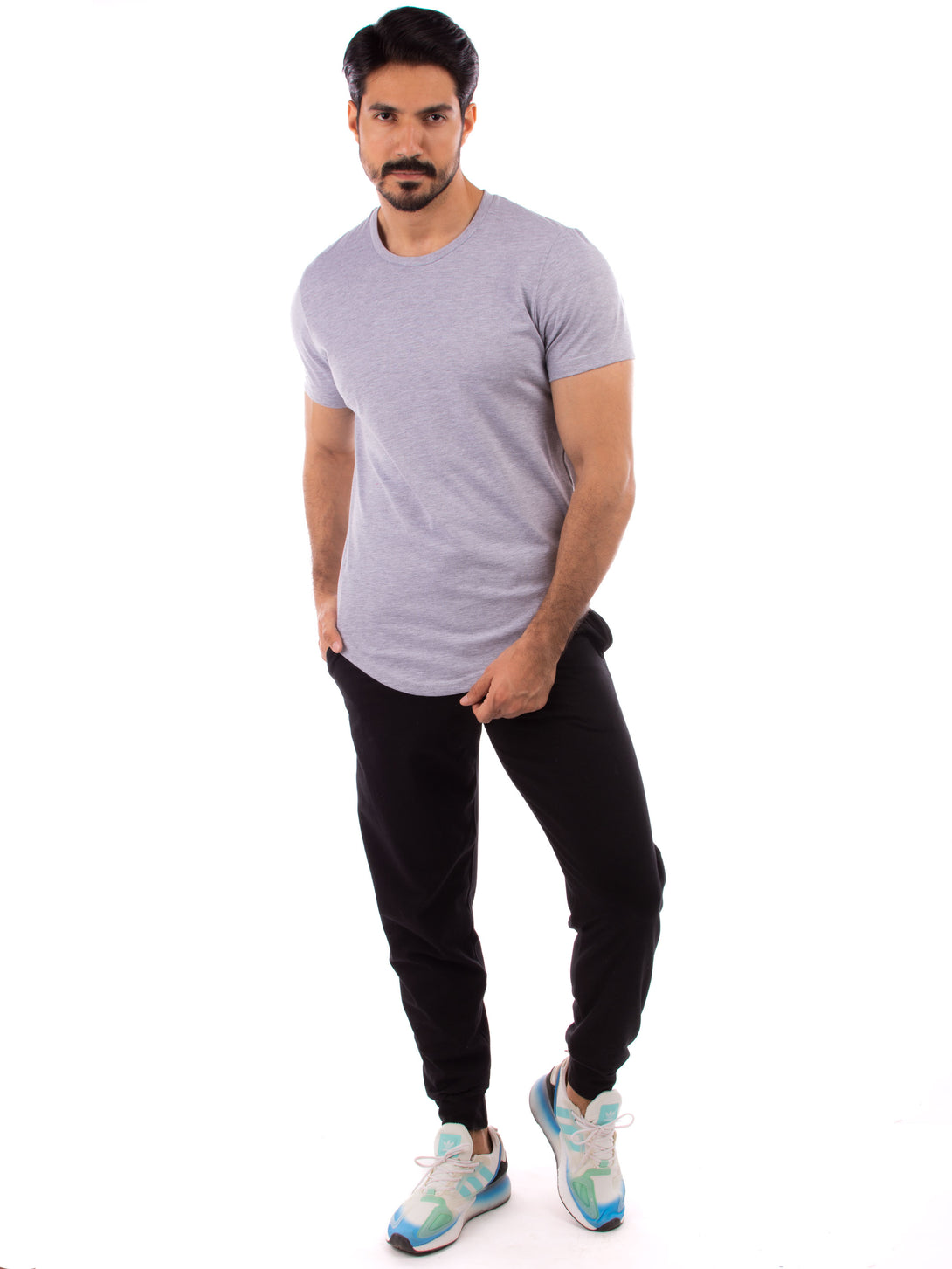 Gray curved T-shirt