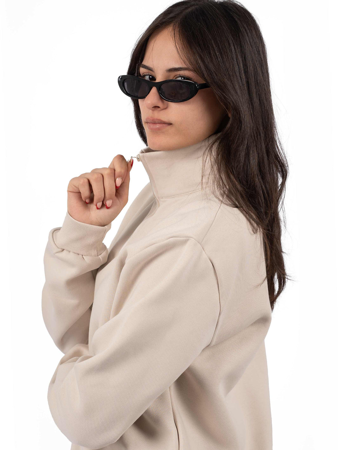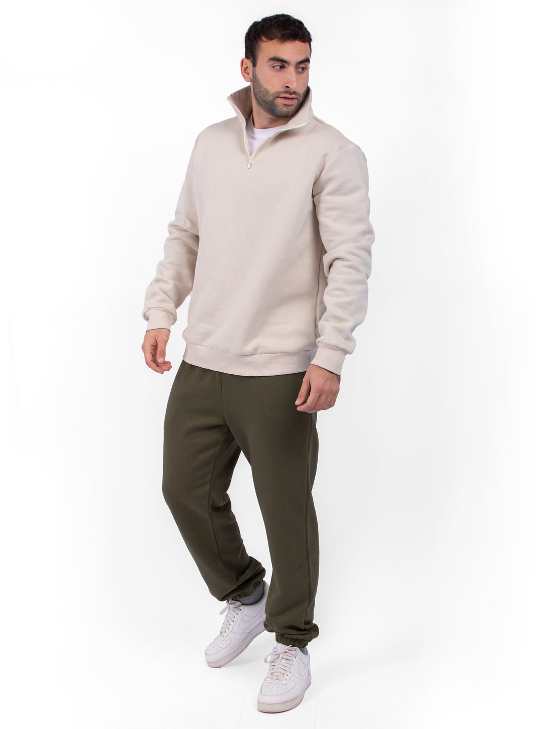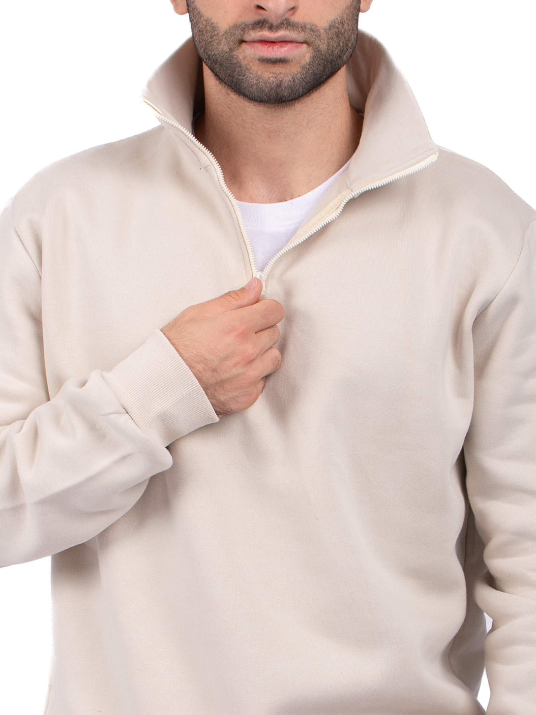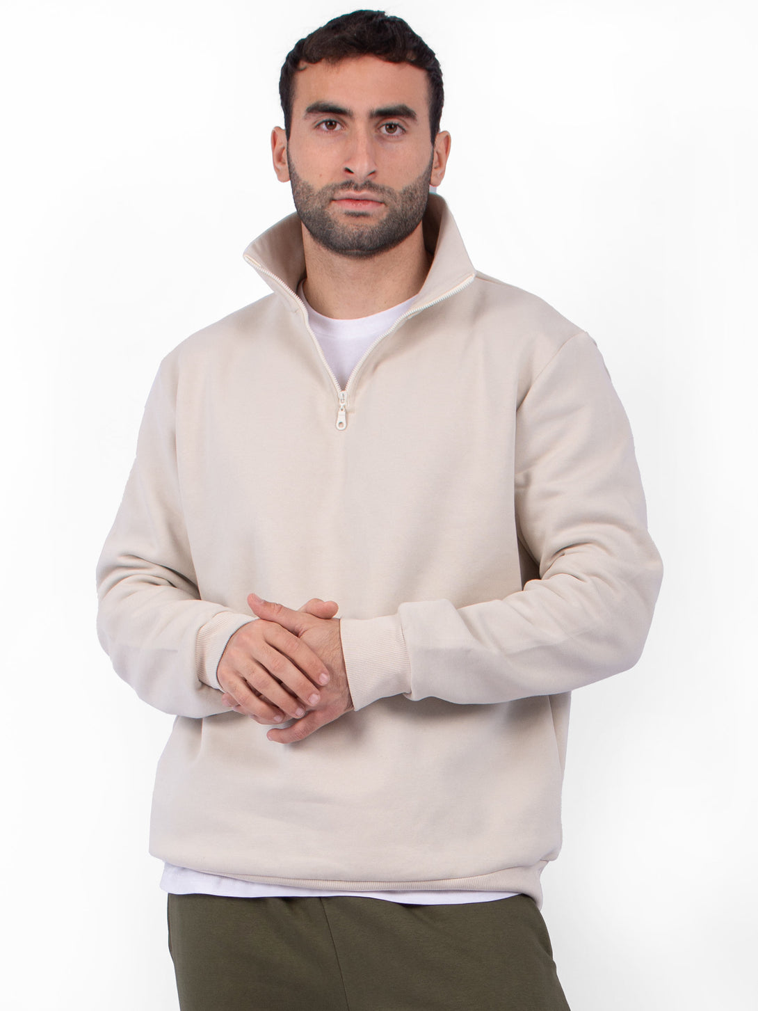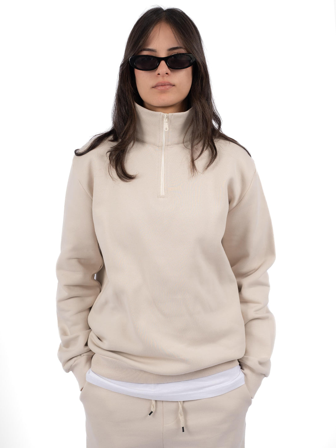 Regular fit sweater Knitted in cotton blend yard. High neck with a zip-ip Long sleeves. Ribbed trims