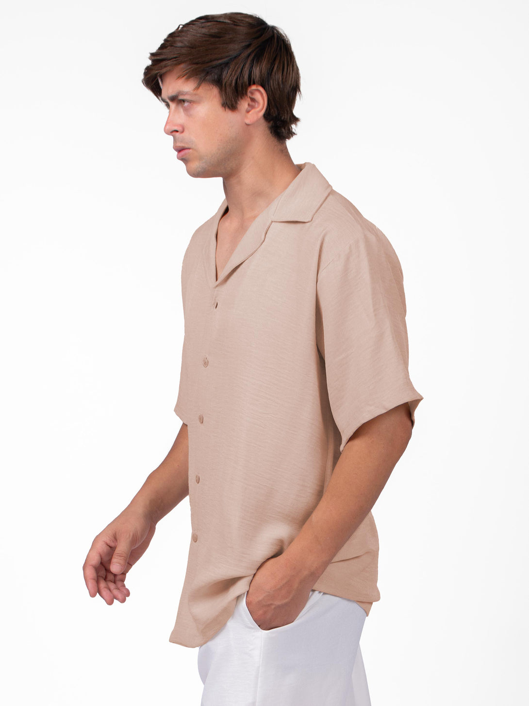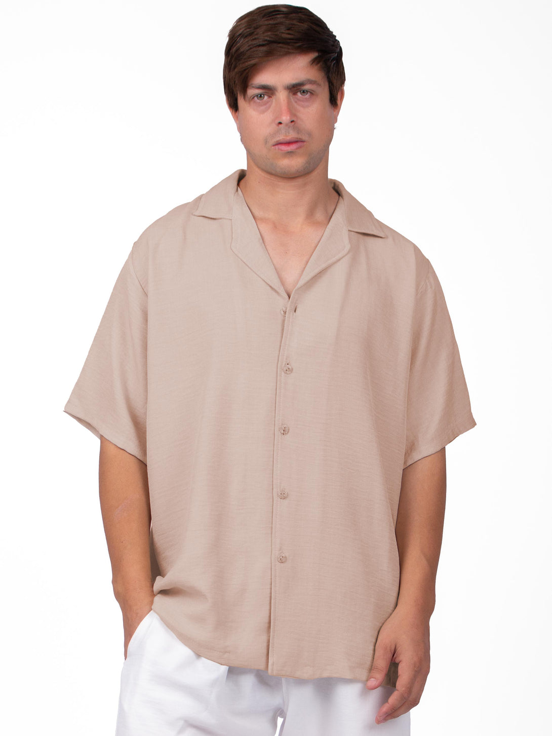 Short-sleeved shirt. Relaxed fit with a resort collar, buttons down the front, Low dropped shoulders, and a straight-cut hem.