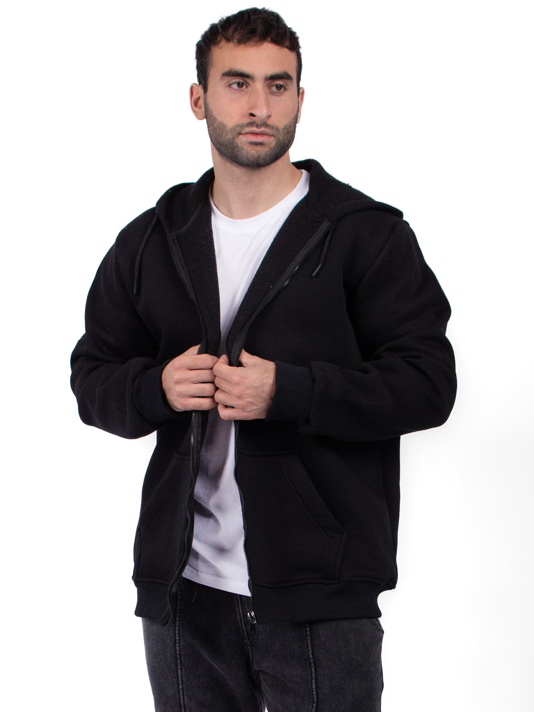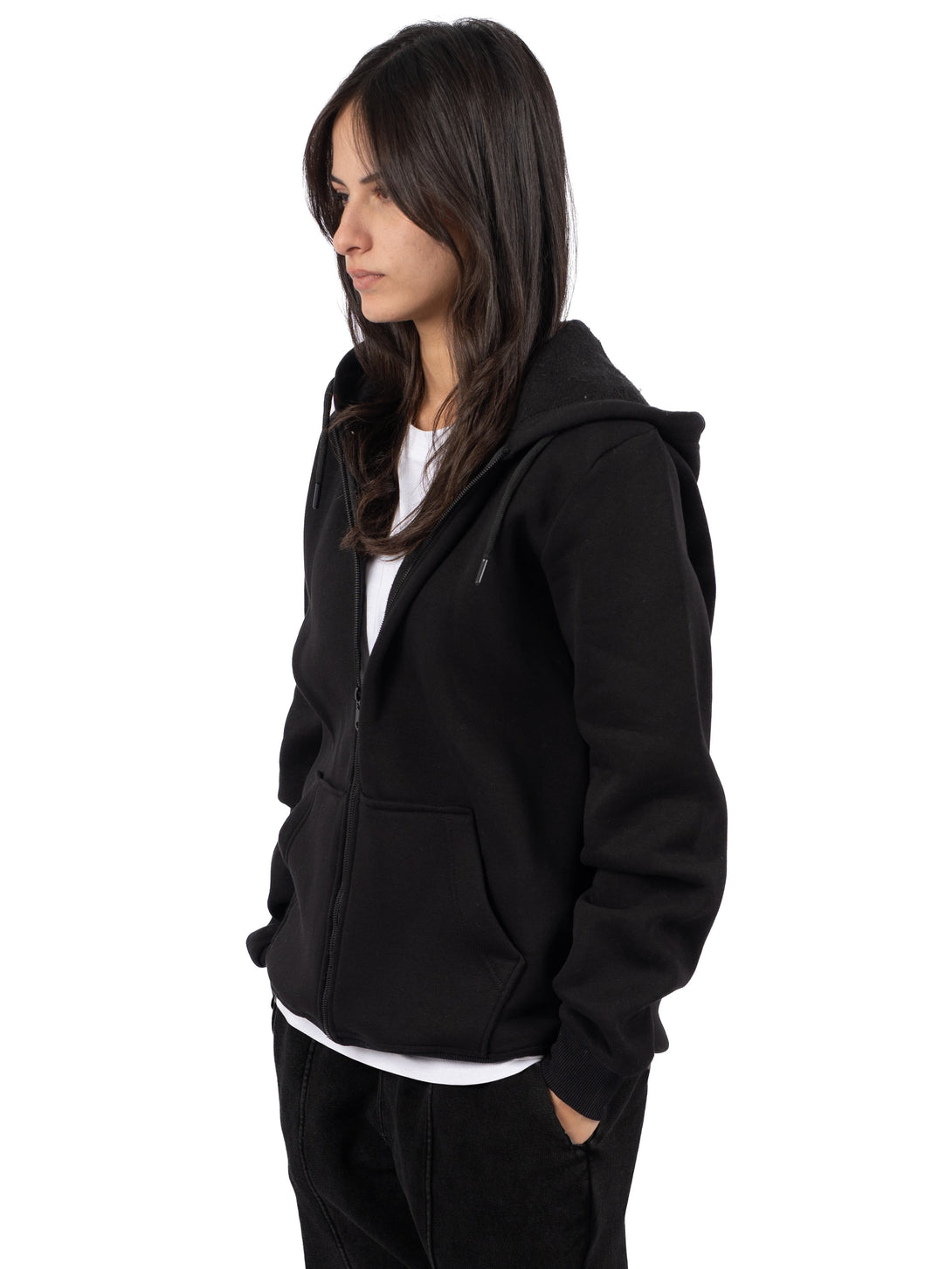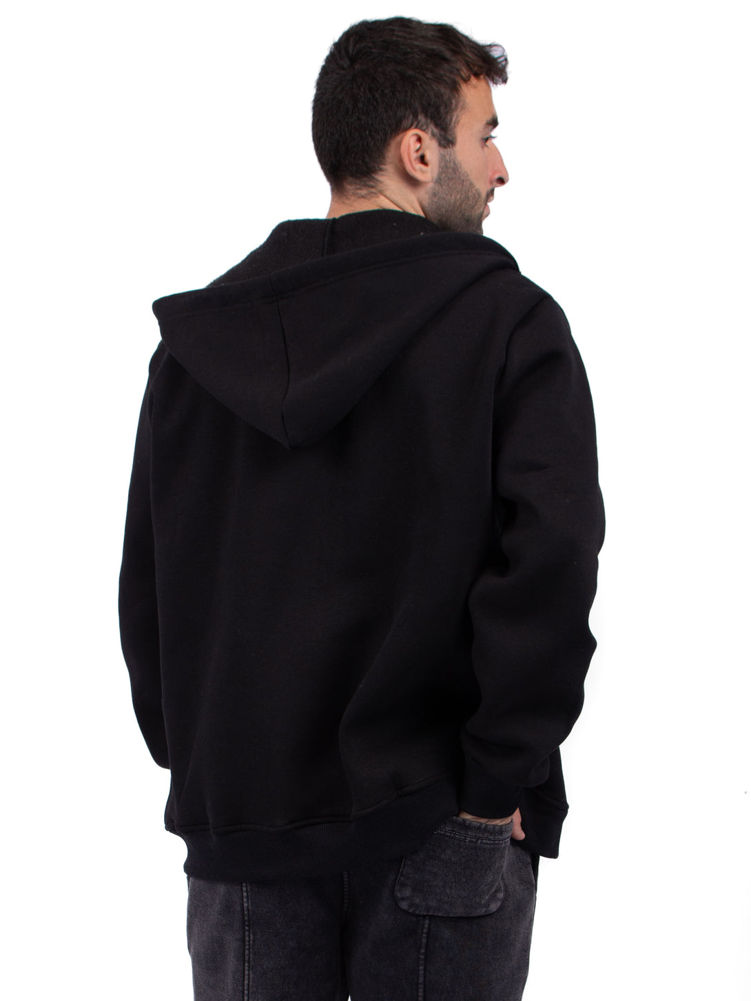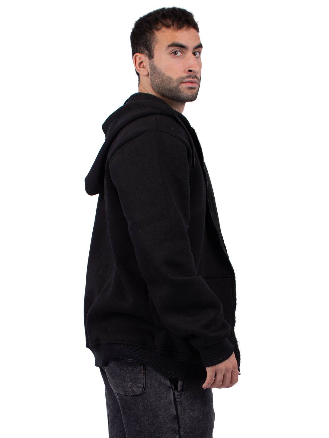 BLACK ZIP-UP HOODIE
