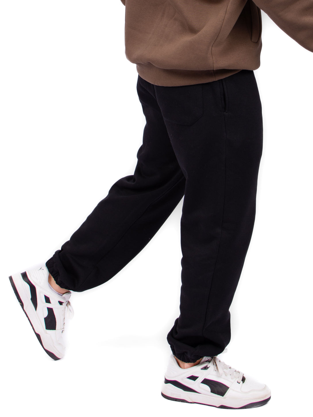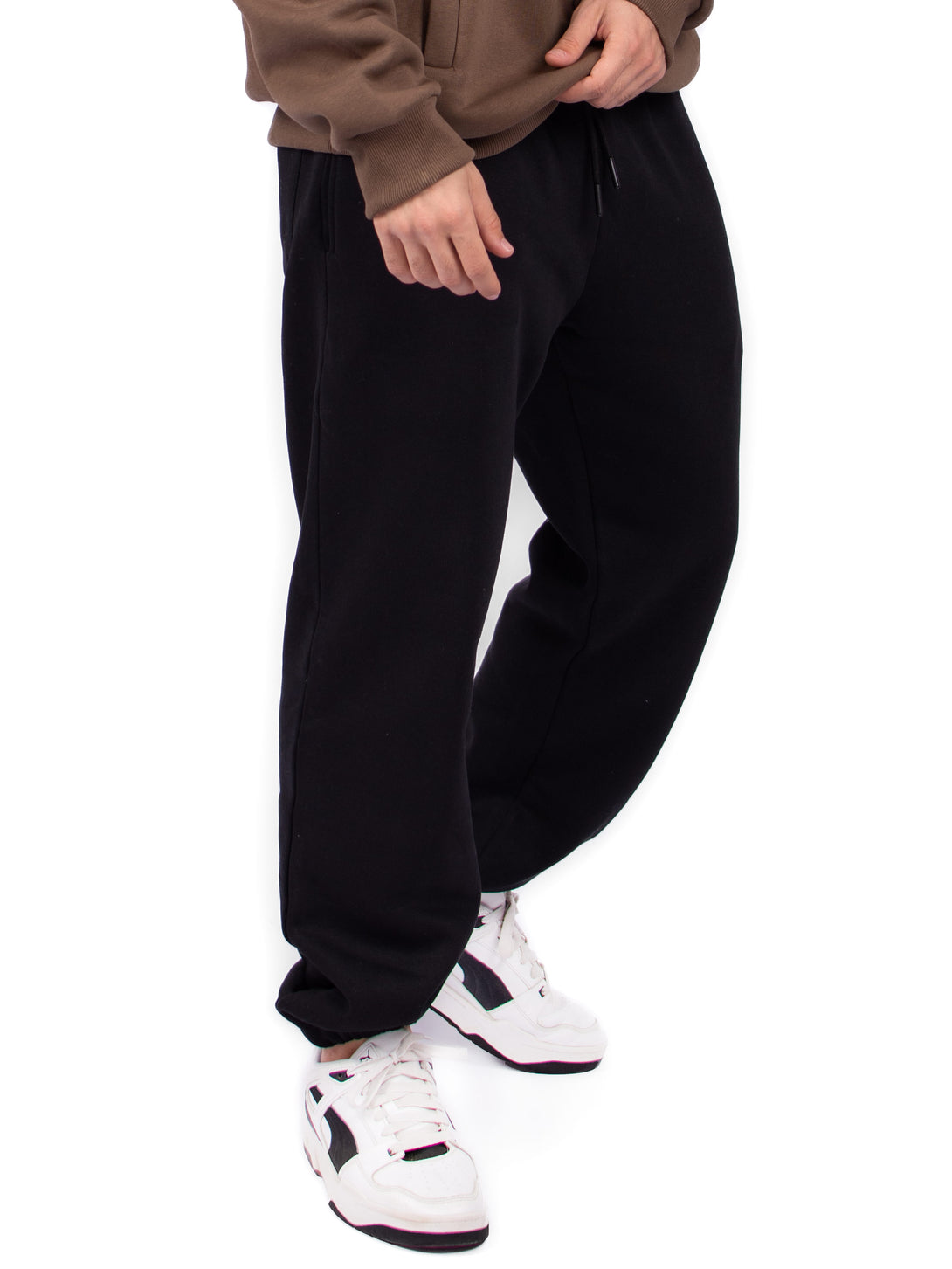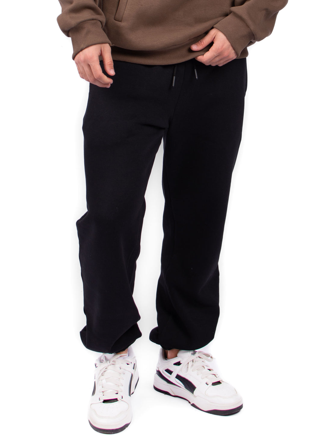 Relaxed fit trousers, featuring ad adjustable elasticated waistband, with drawstring and front/back pockets. Cuffed elastic hems
