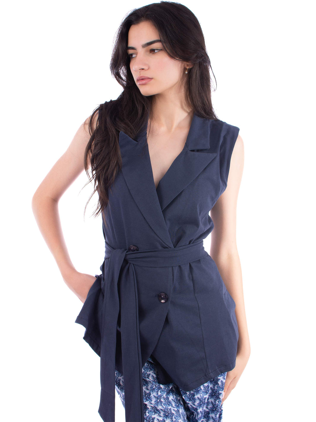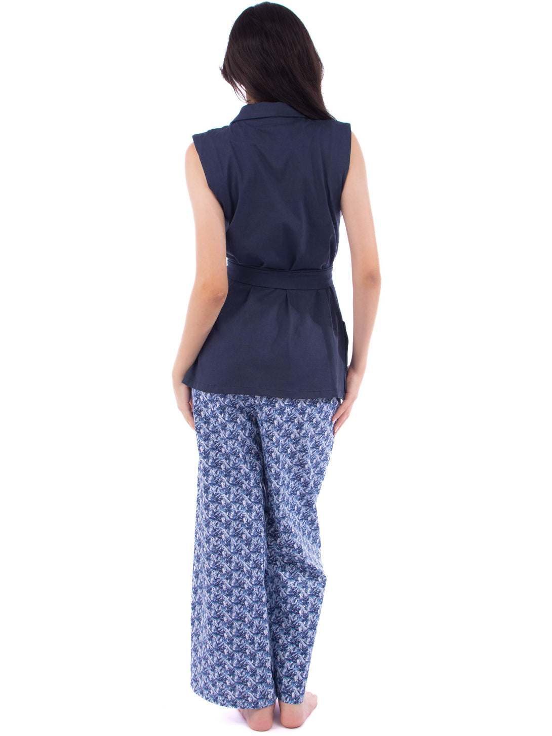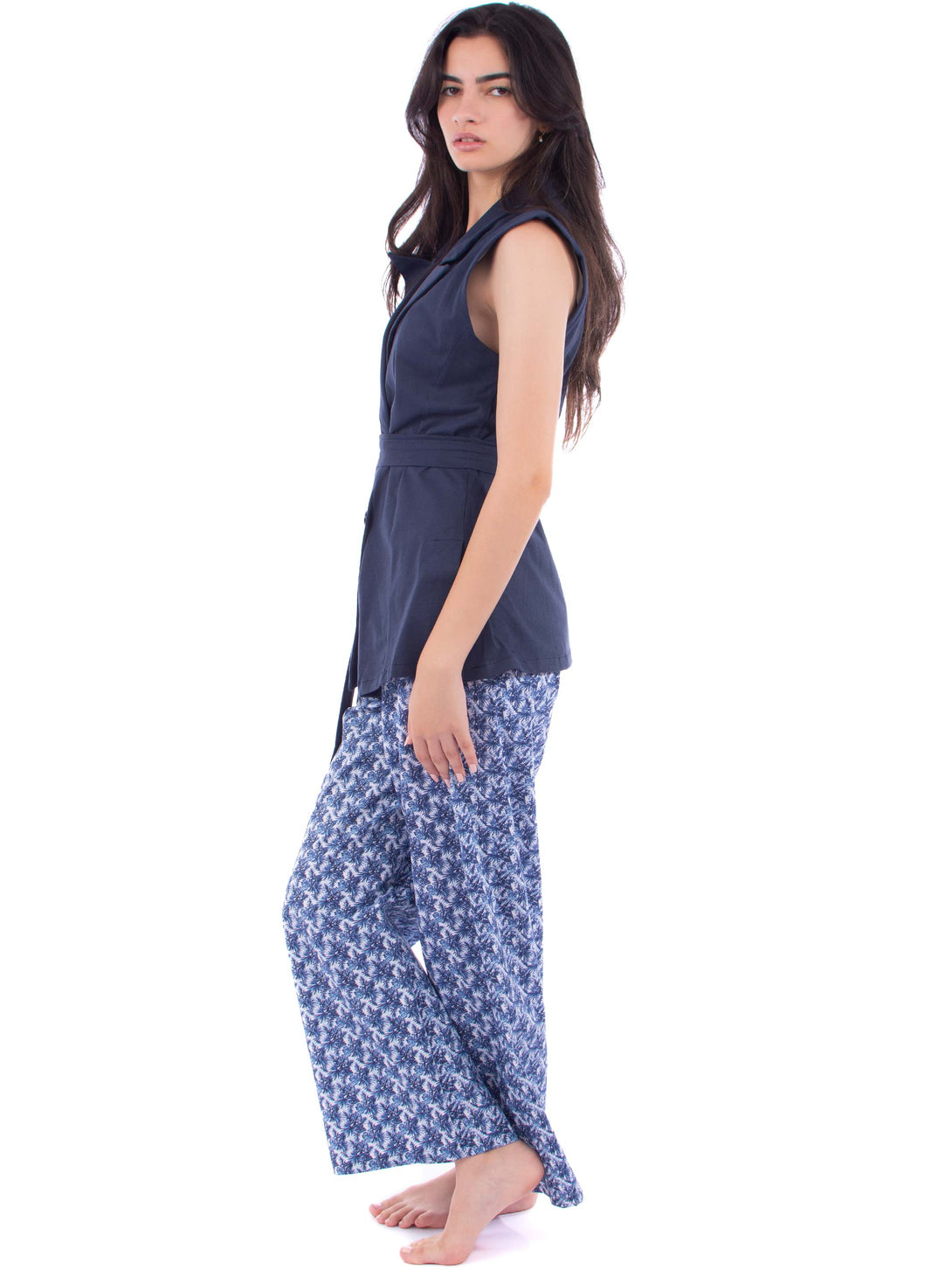 Cotton Double sided jacket sleeveless with belt and buttons, with a straight polka dots pattern cut comfy pants.