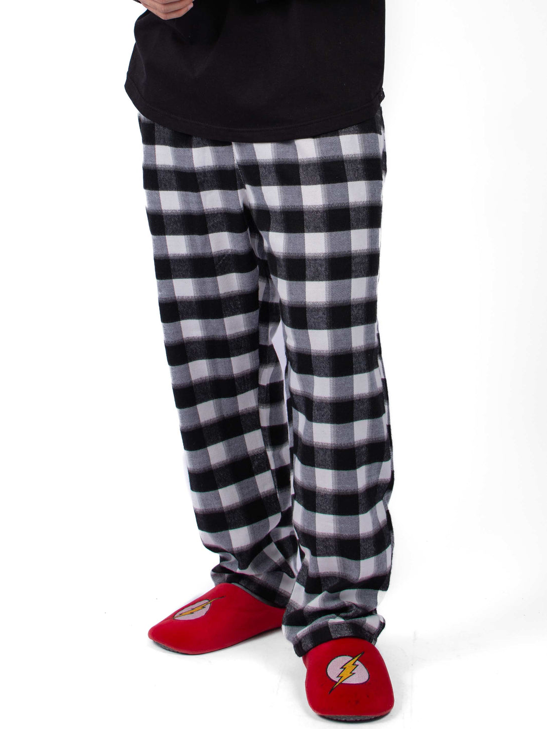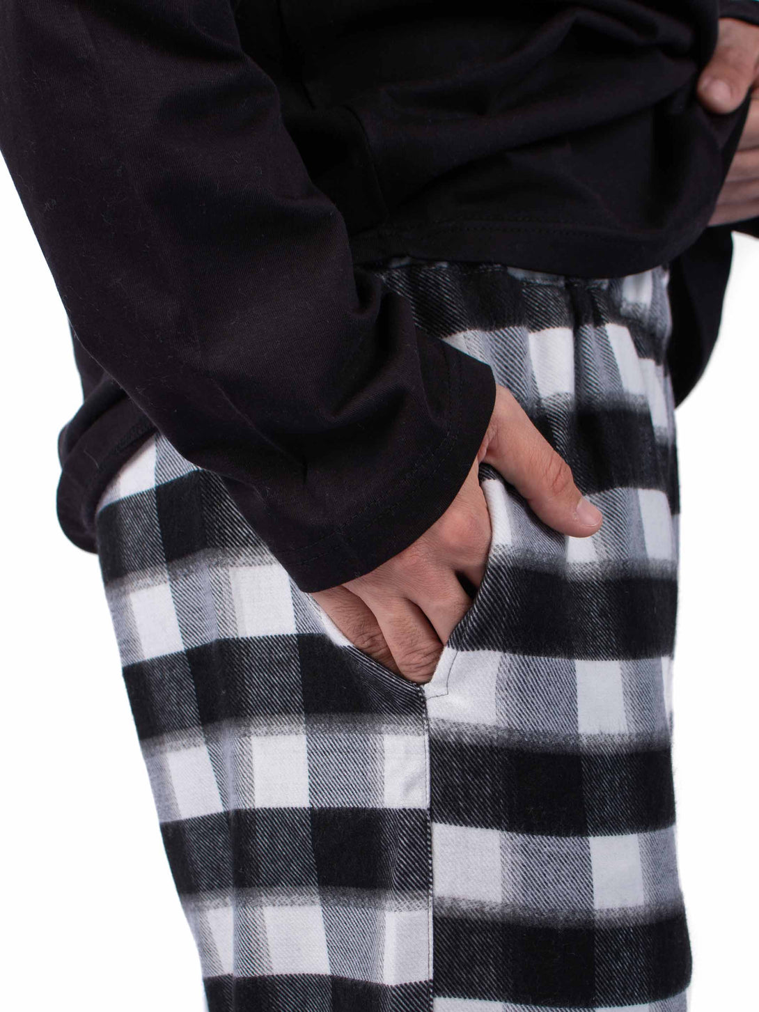 Comfortable winter checkered pants, straight cut with elastic in the waist with two side pockets