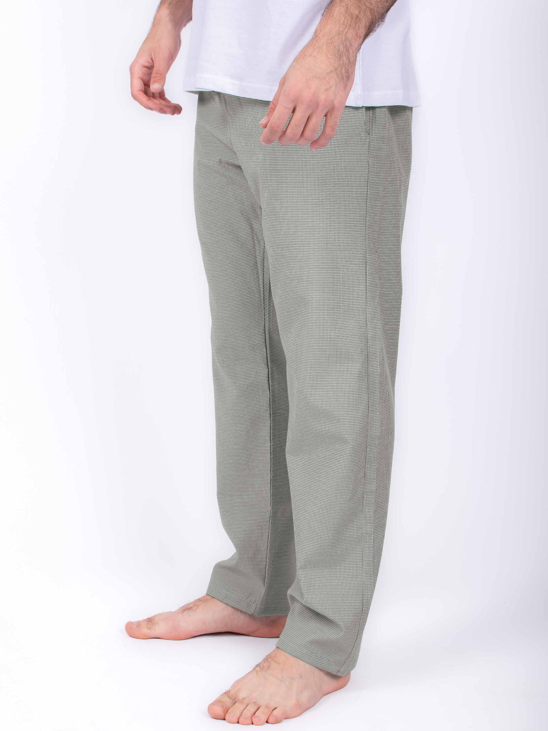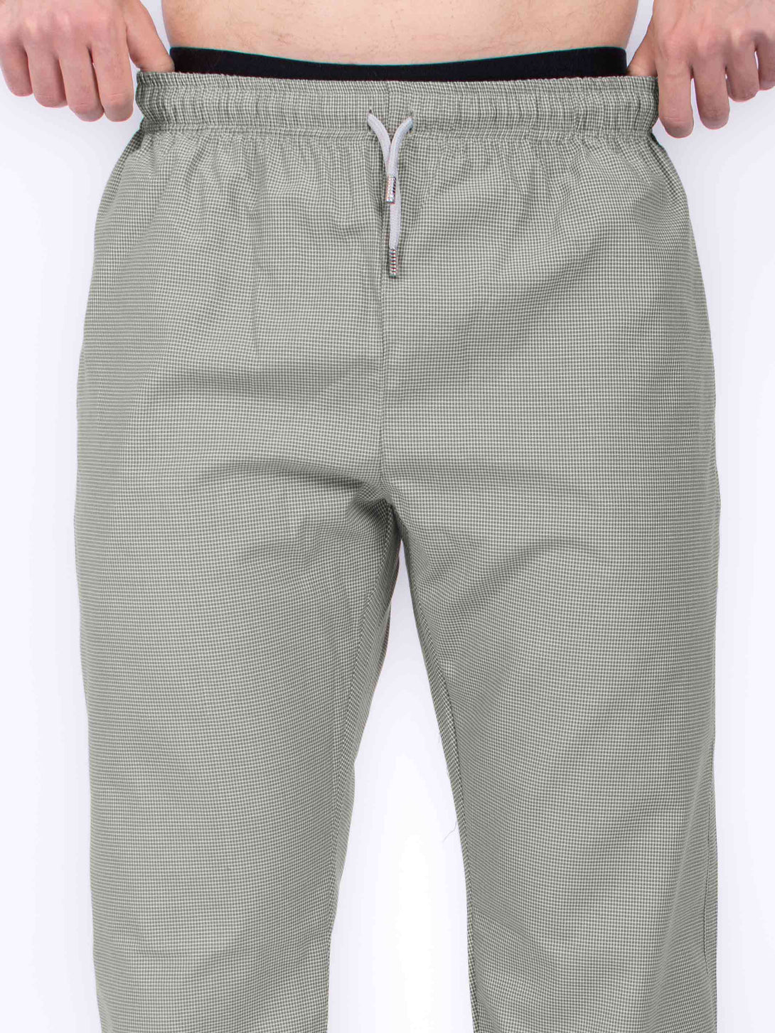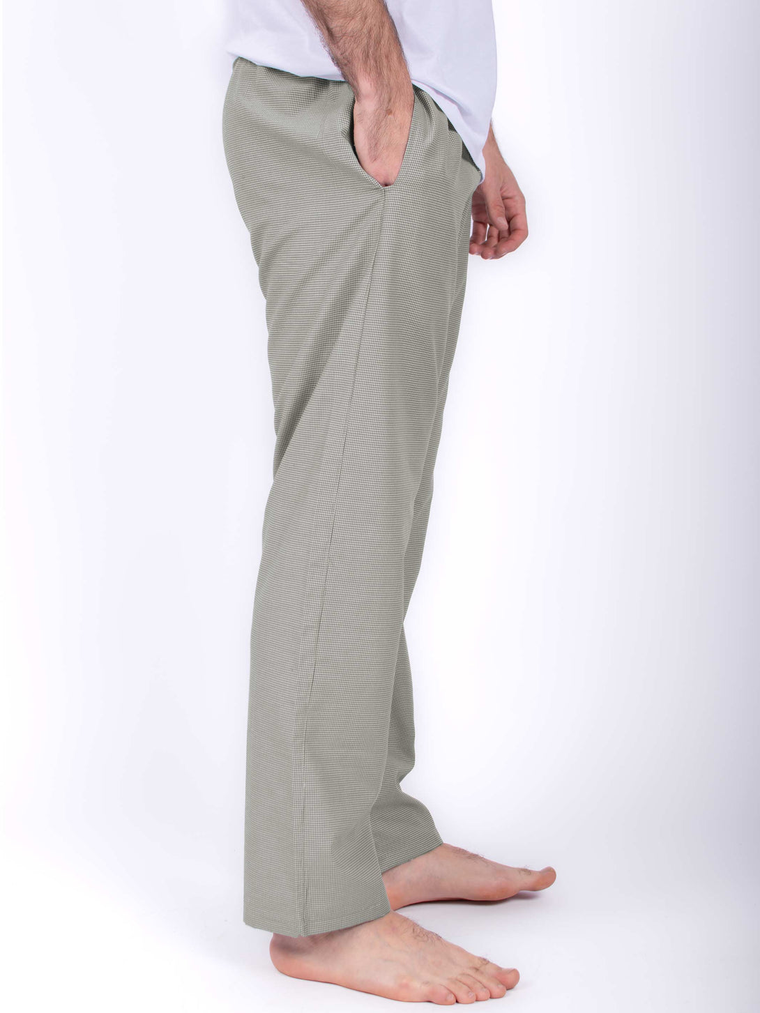 Checkered comfortable summer straight cut trousers, elastic at the waist with two side pockets