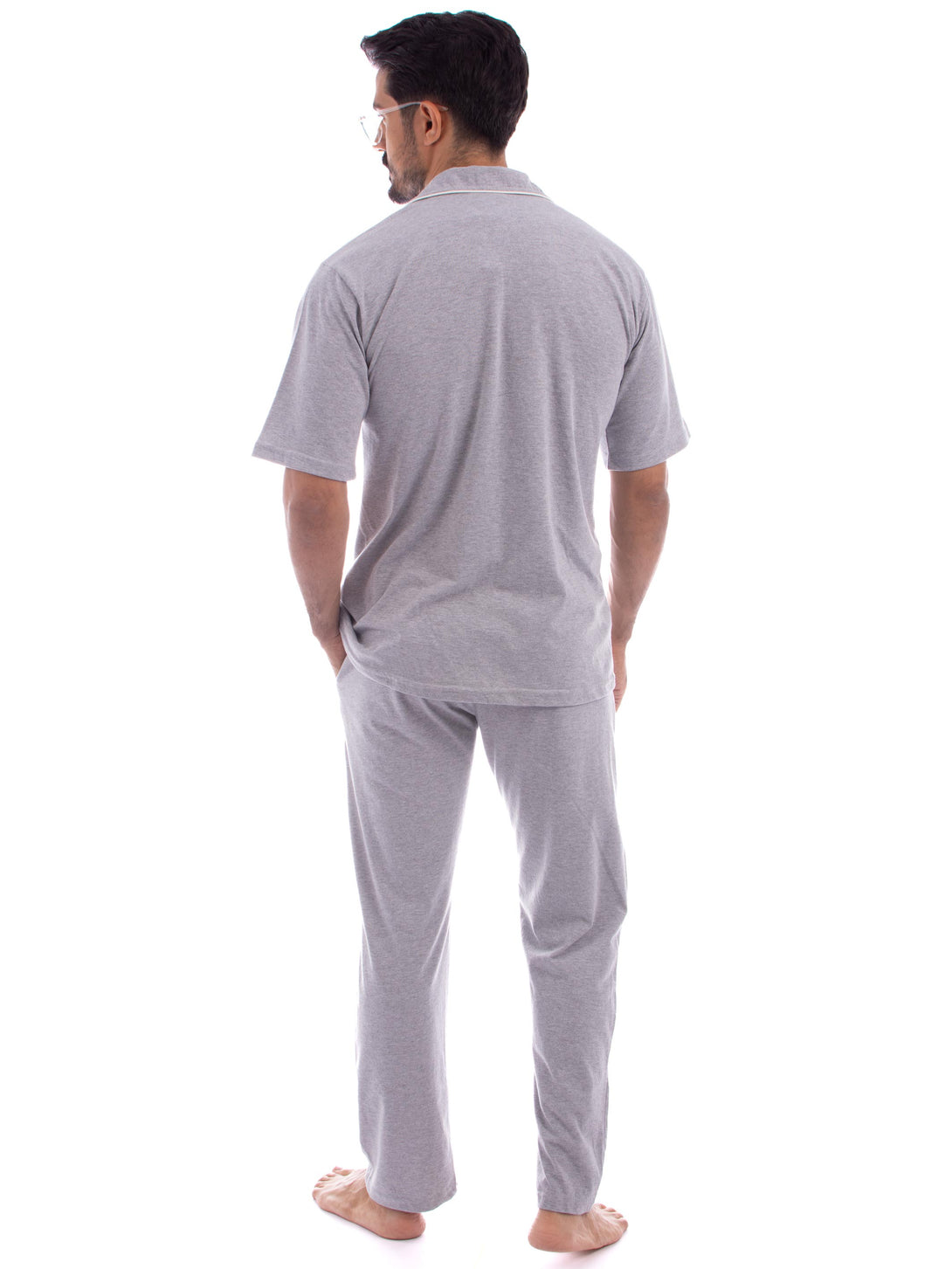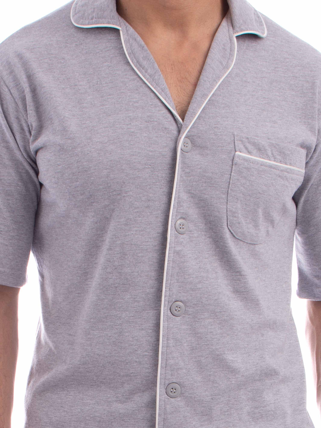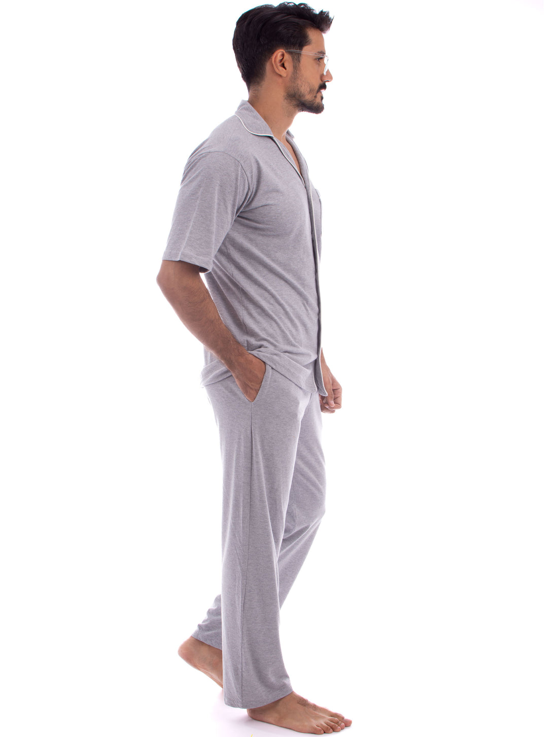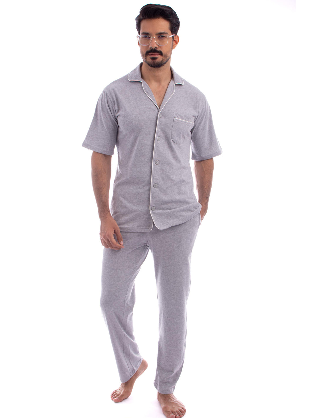 Pyjama Classic, Shirt with V-neckline and buttons down the front, Bottoms with an elasticated waist and straight legs with two side pockets.