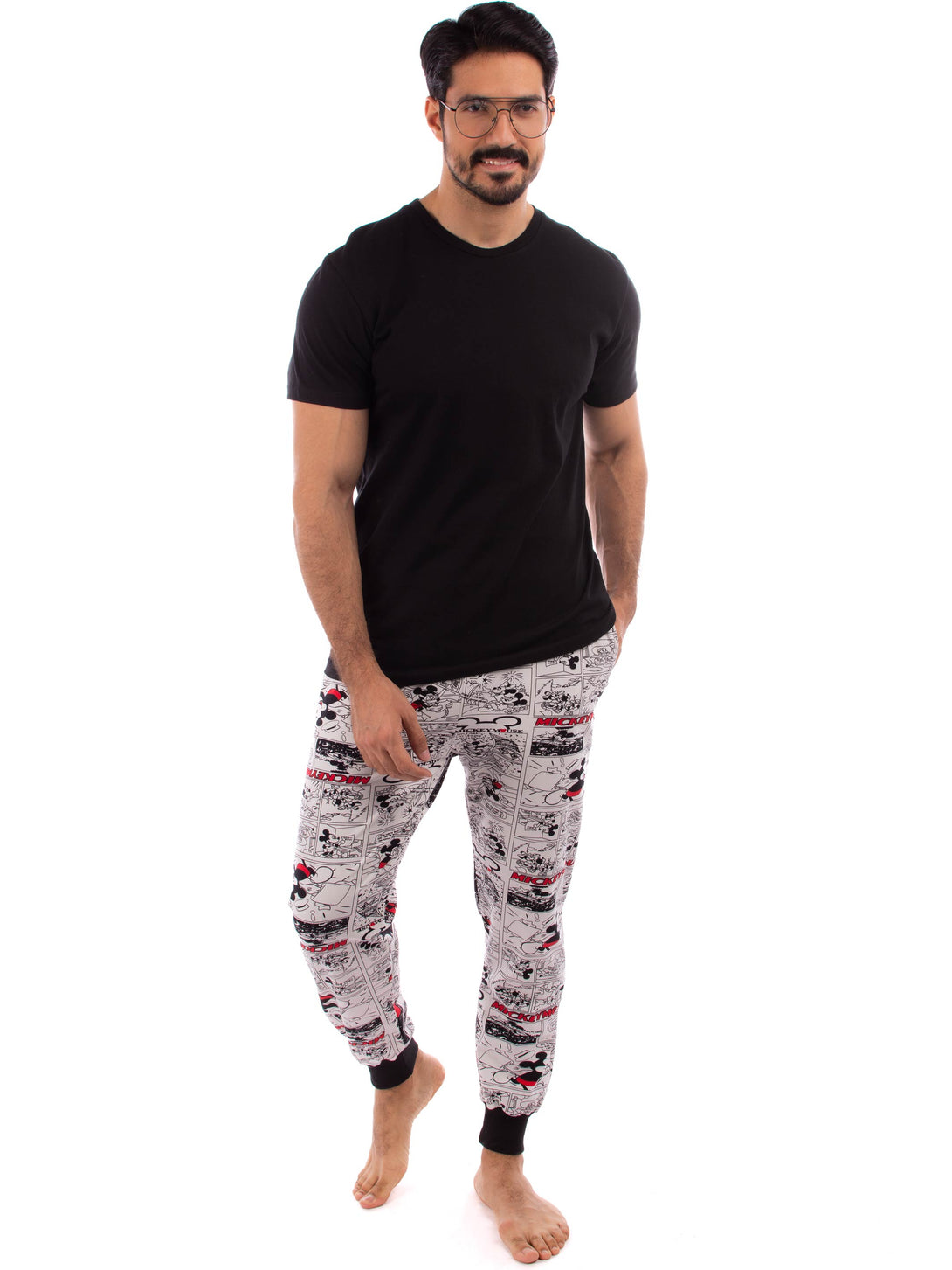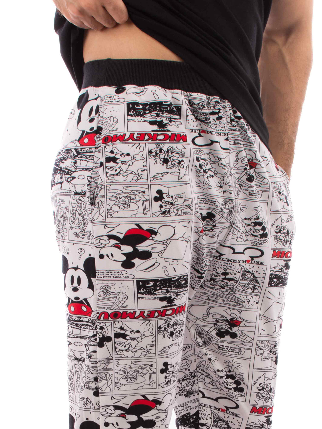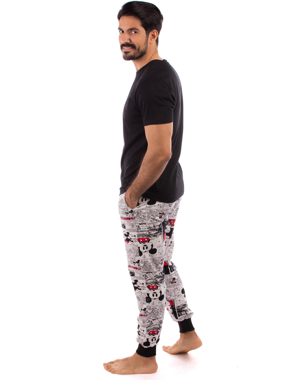 Pyjama set, a round neckline T-shirt with short sleeves and comfy cotton trousers with two sides pocket in all-over Mickey Mouse pattern with lycra ankles.