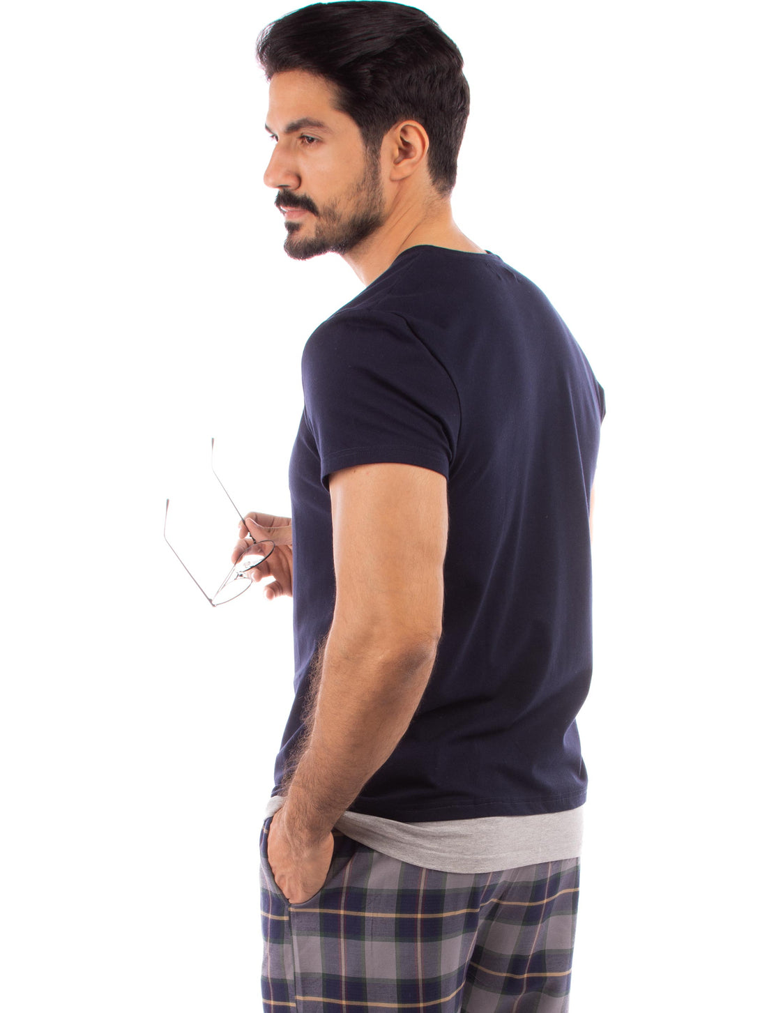 Slim fit cut T-shirt, round neck with fake undershirt style
