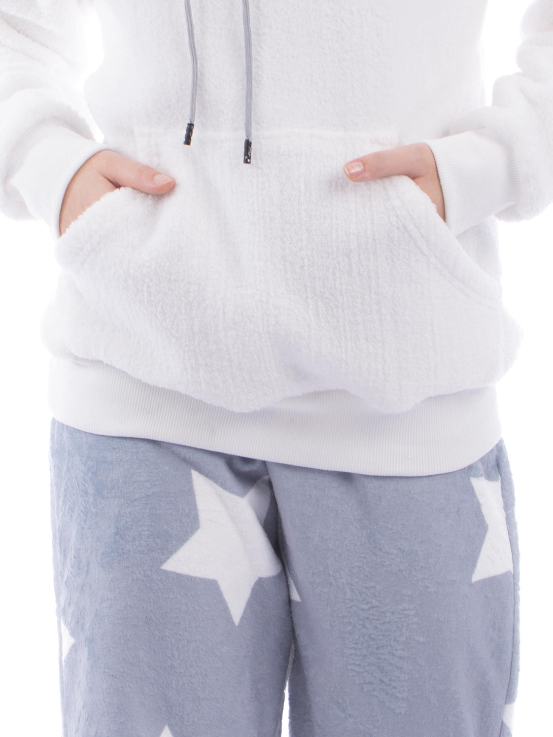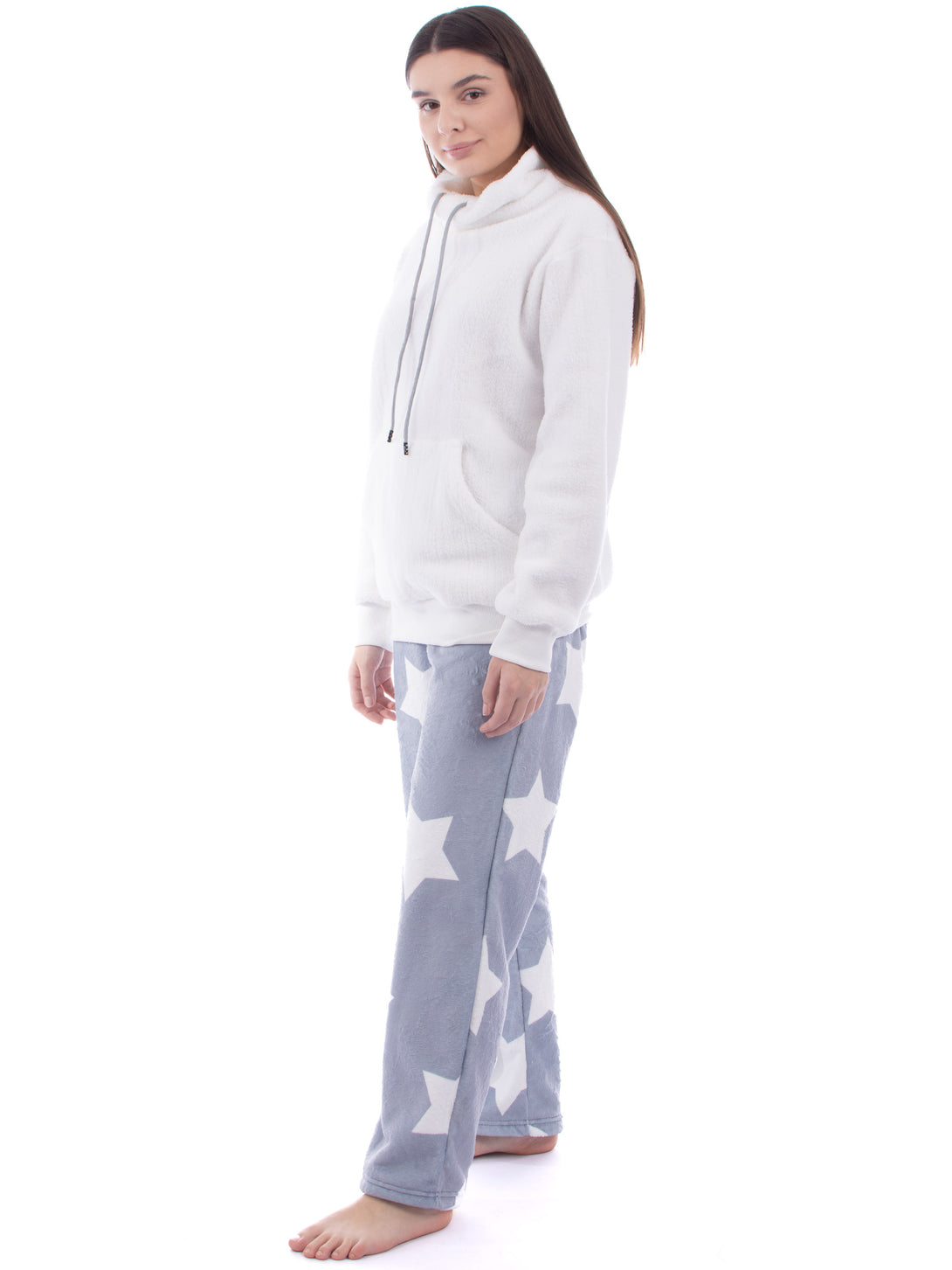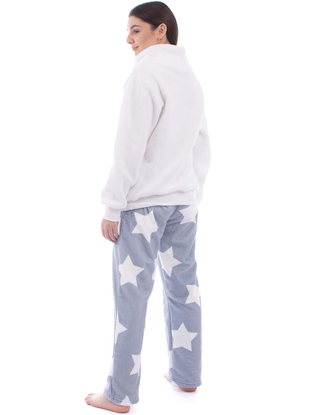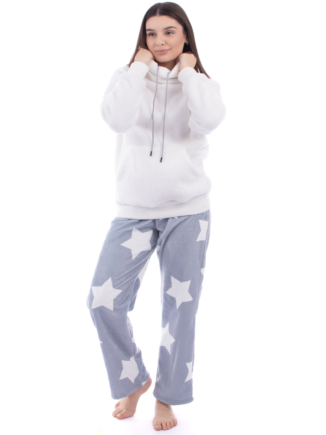 Fleece Pyjama set, a High Collar sweatshirt with big front pocket, straight cut Pants with an elasticated waist both in polar.