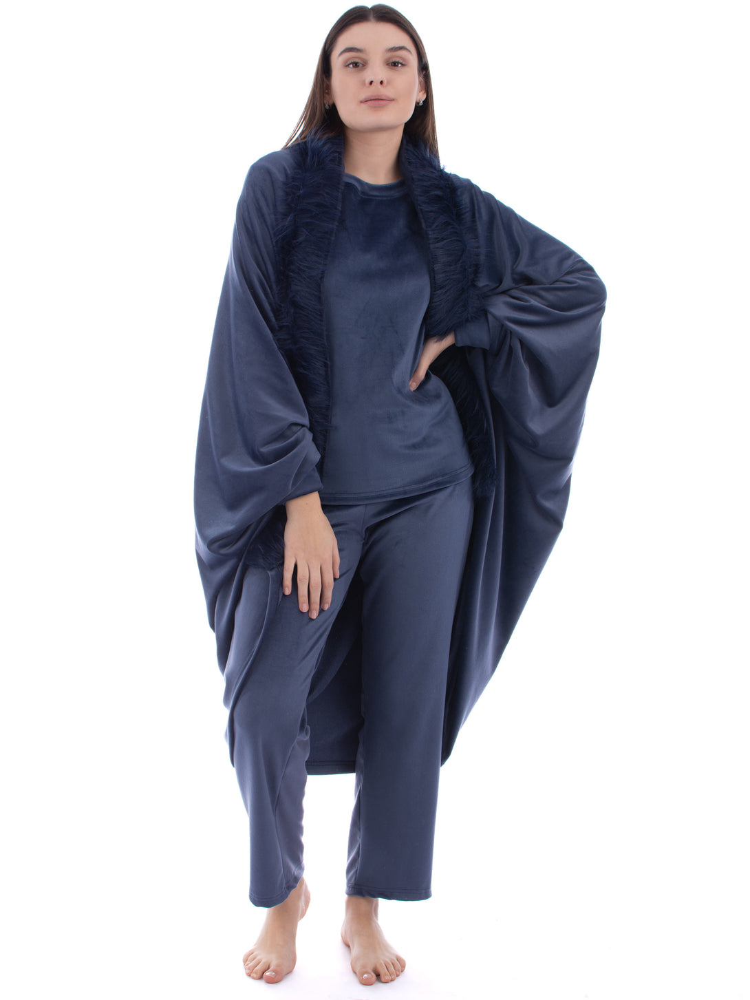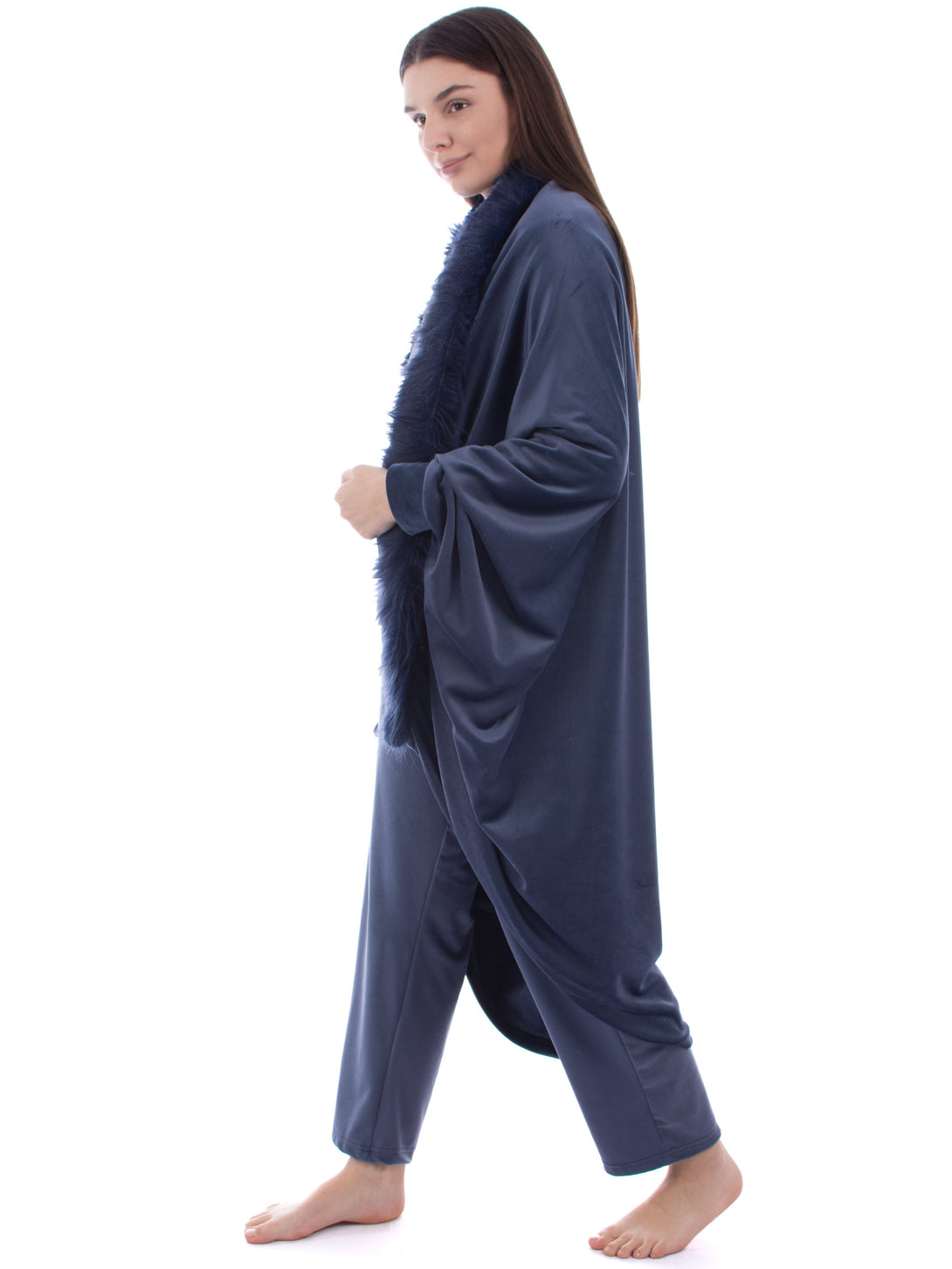 A unique classy set of Velvet Cape/coat bat sleeves, with long sleeve top & wide leg velvet pants elasticated waist.