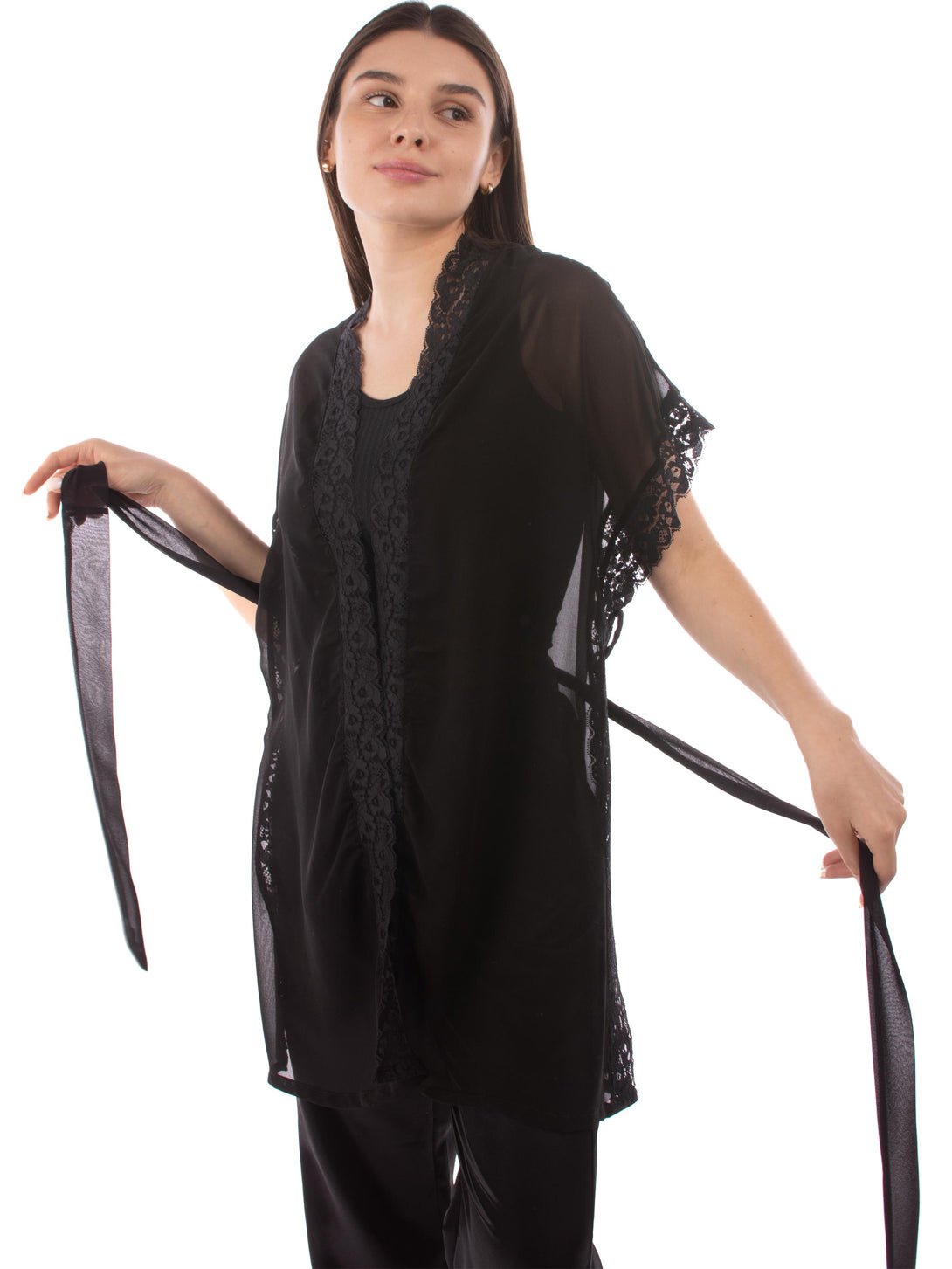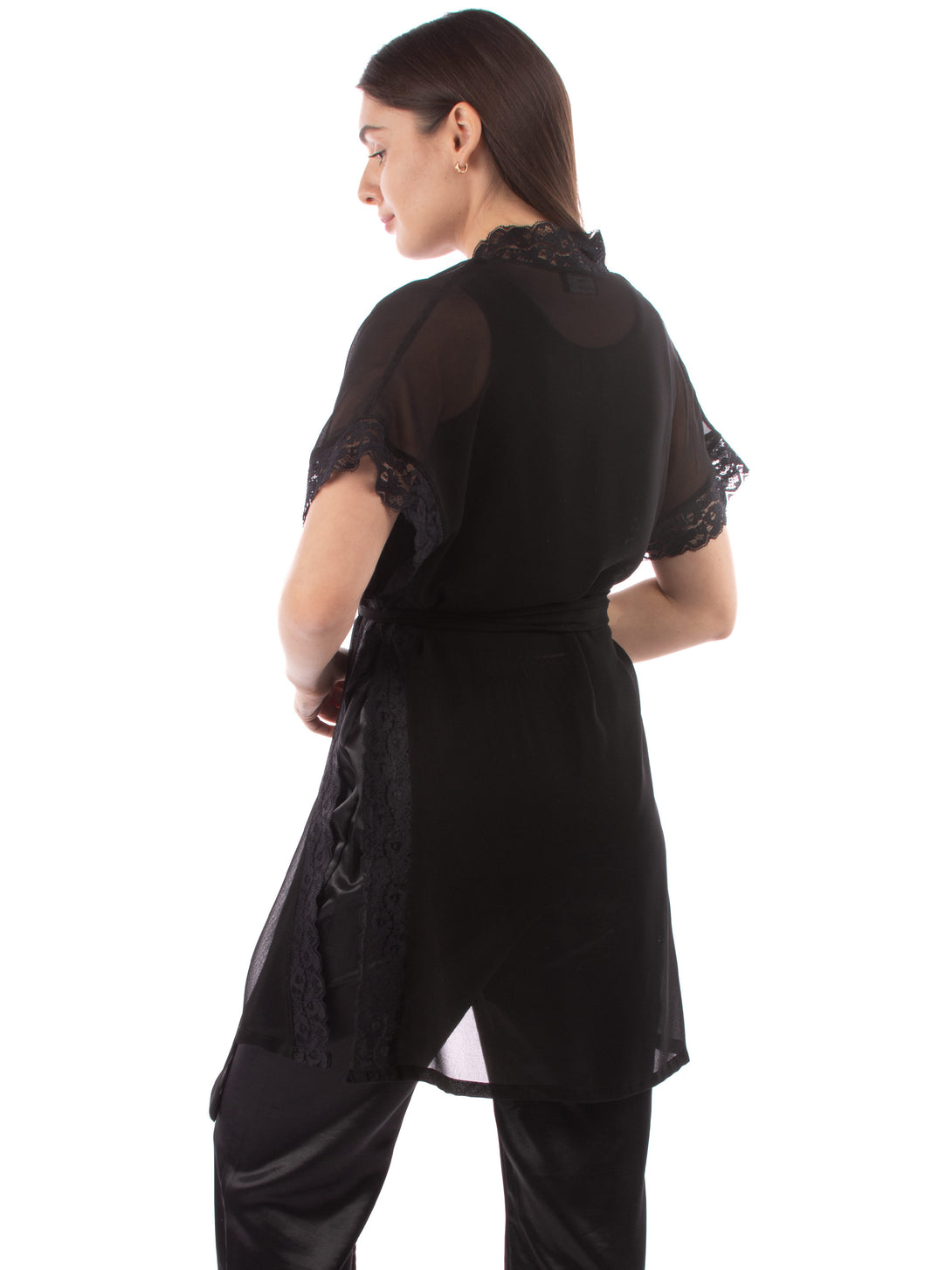 Transparent Short kimono, Chiffon Belt with Lace edges with big slit on both sides.