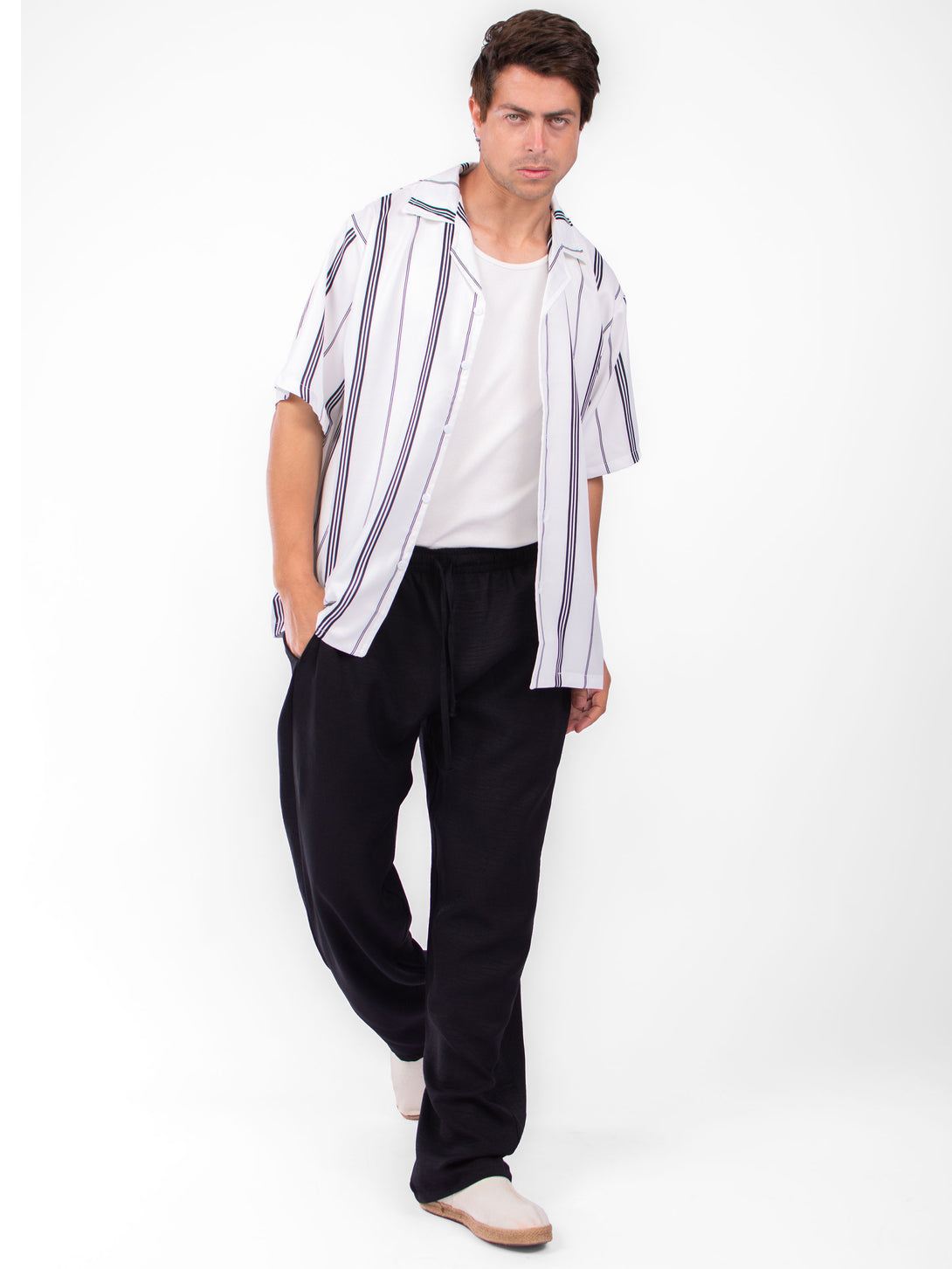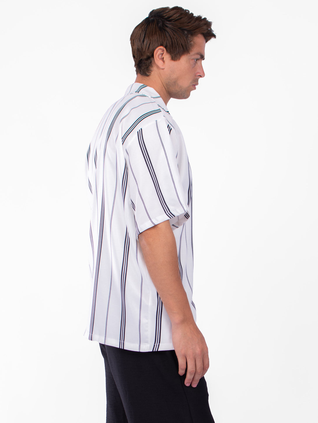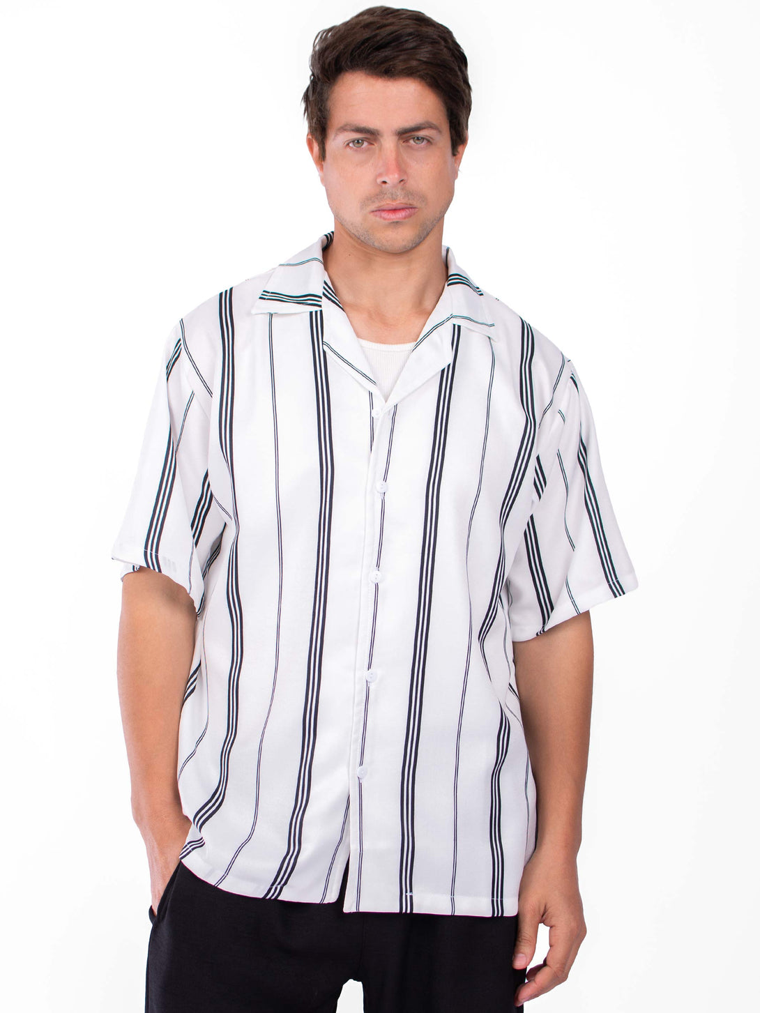 Short-sleeved shirt. Relaxed fit with a resort collar, buttons down the front, Low dropped shoulders, and a straight-cut hem.