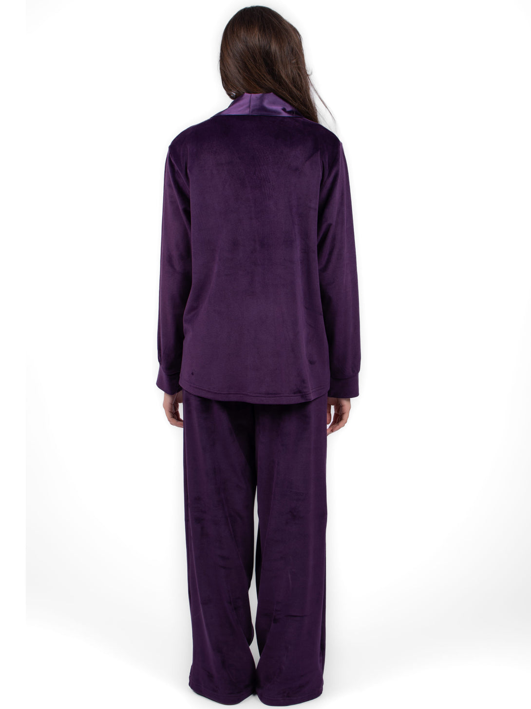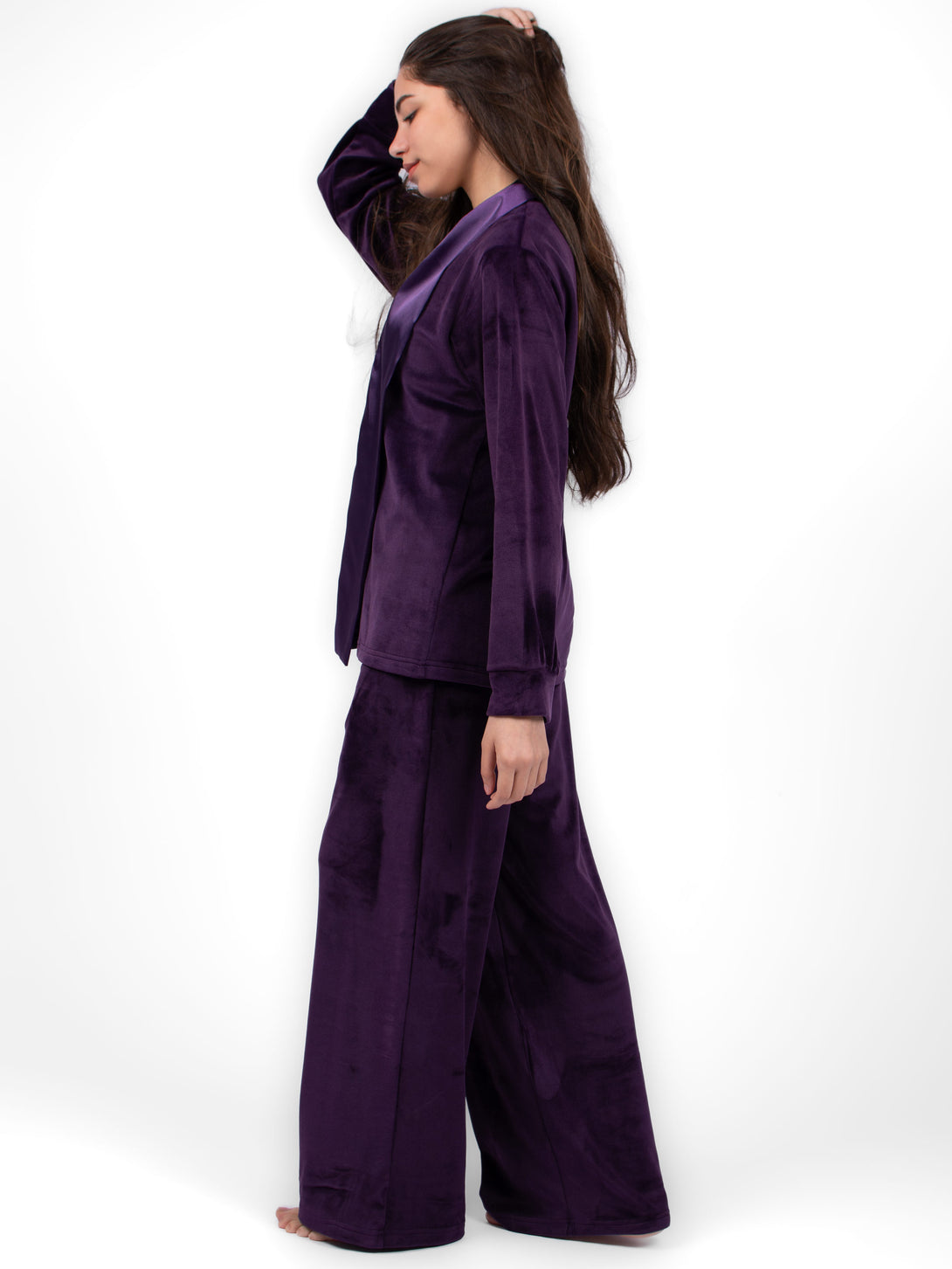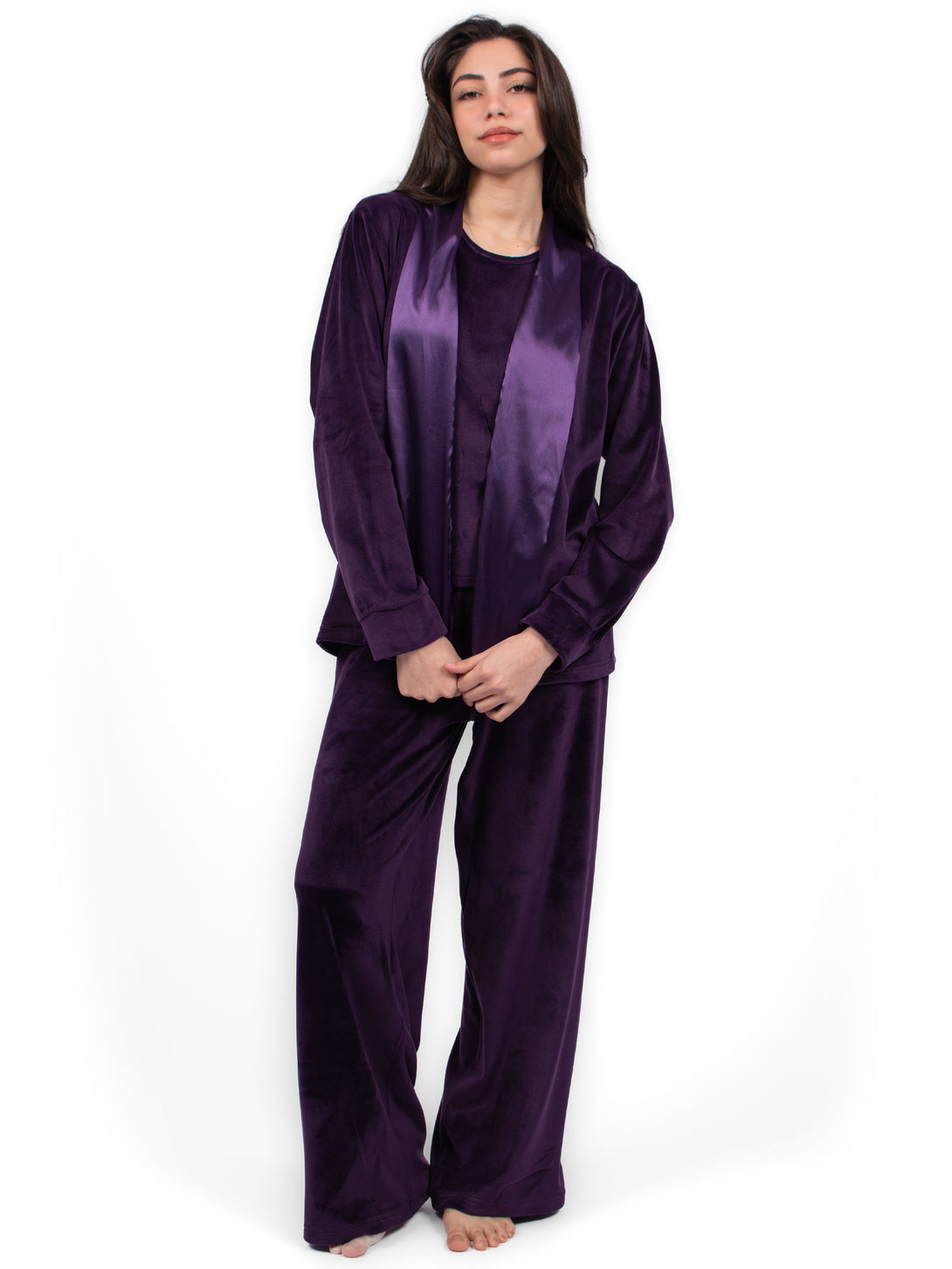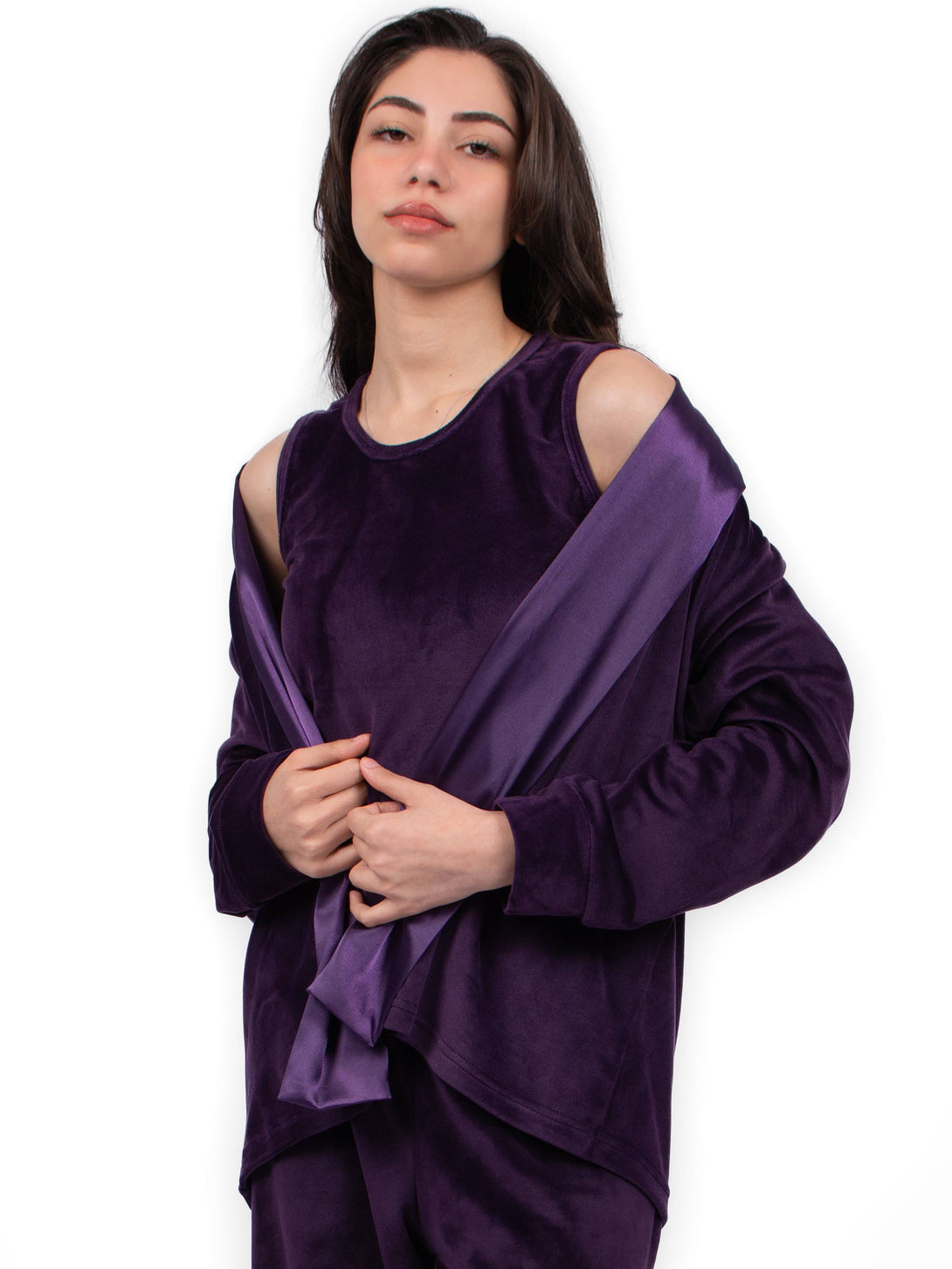 Matching Set of 3 pieces pyjama, Matching Velvet jacket with a tank top and straight cut satin pants with elastic waist.