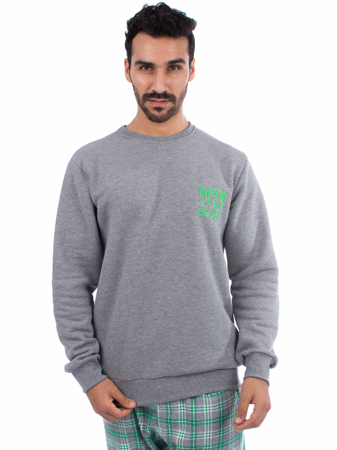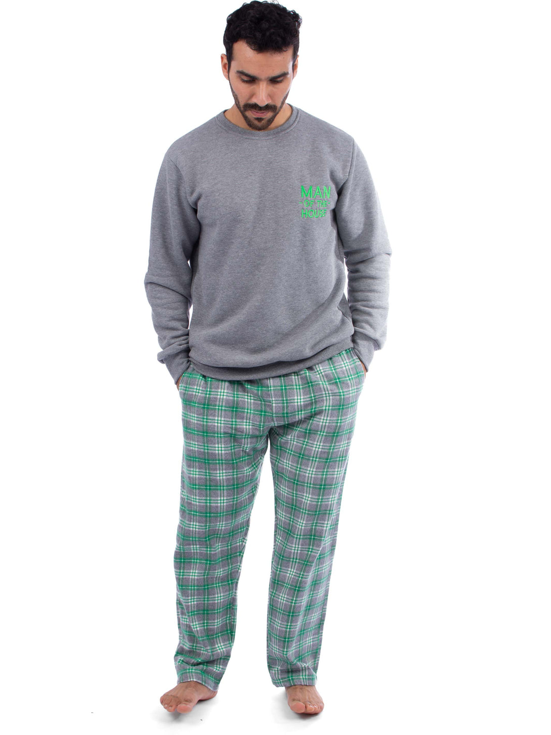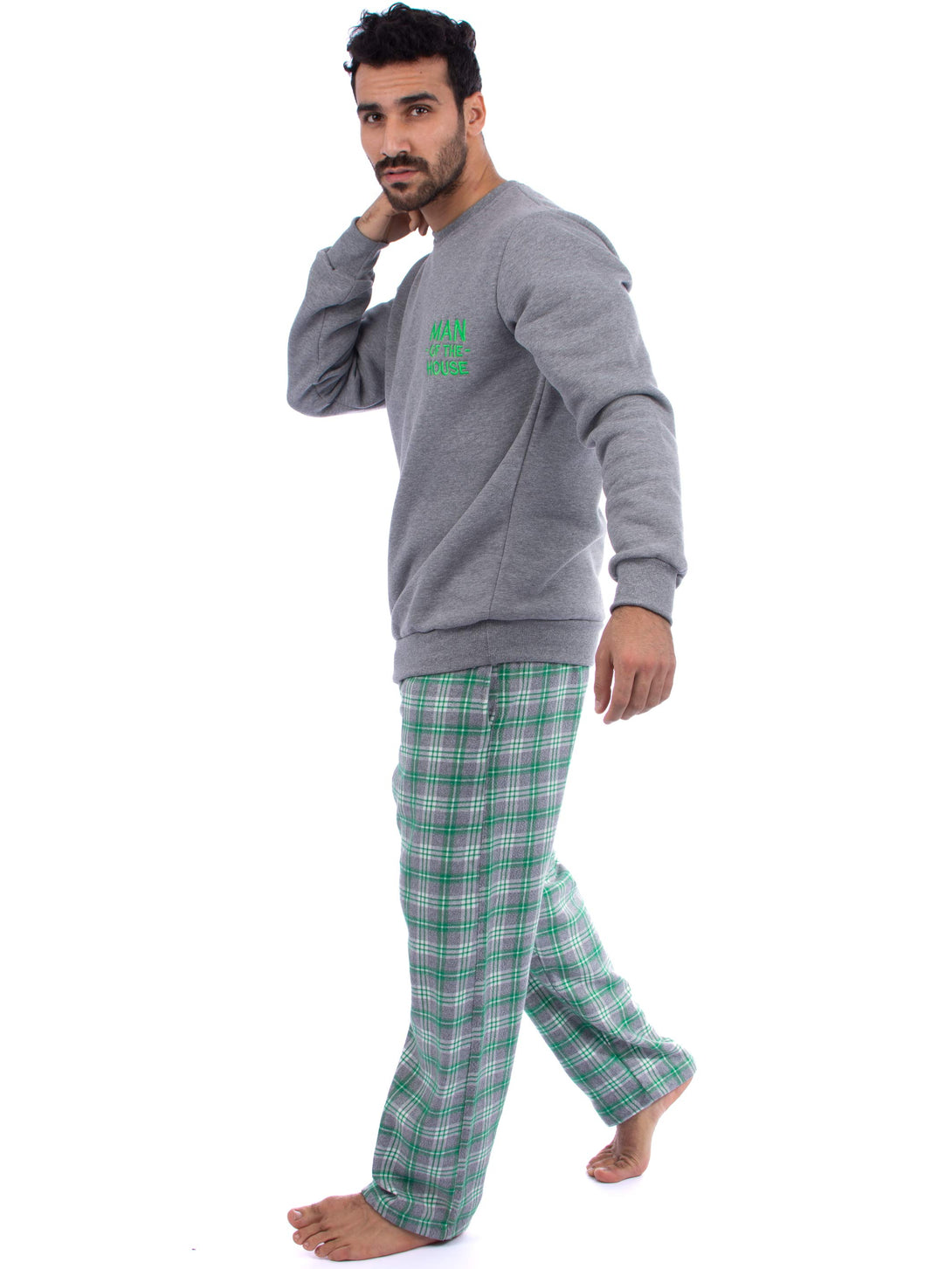 Pyjama set, sweatshirt Embroidery "MAN OF THE HOUSE". Checkered comfortable straight cut trousers, elastic at the waist with two side pockets