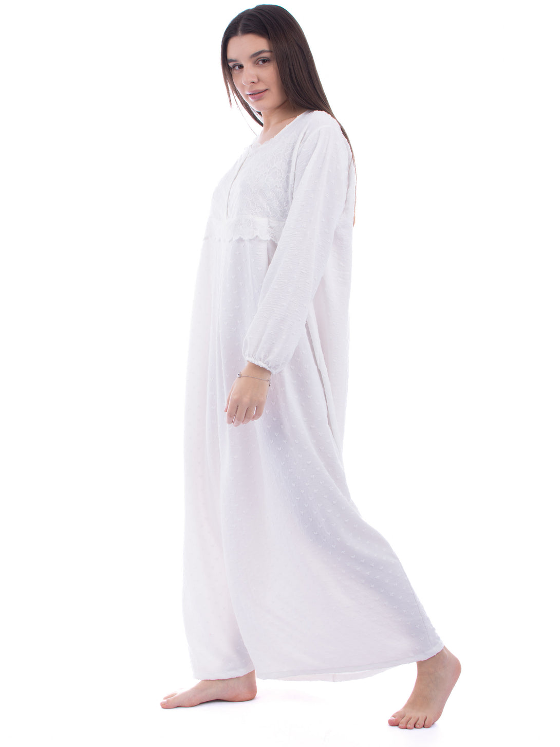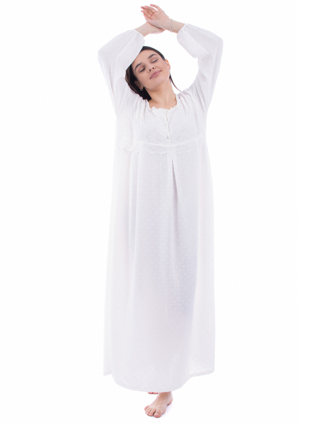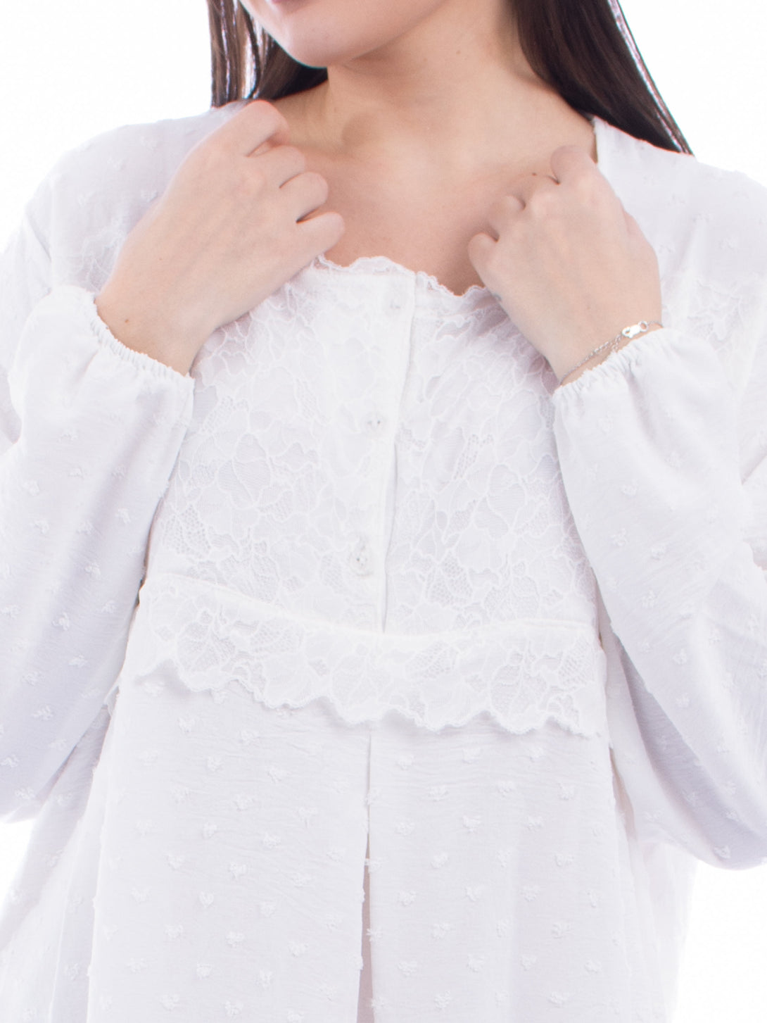 Super Soft Dress with Lace Details and transparent Button with lace details Front Opening for Easy Nursing with elastic on waist wrists.