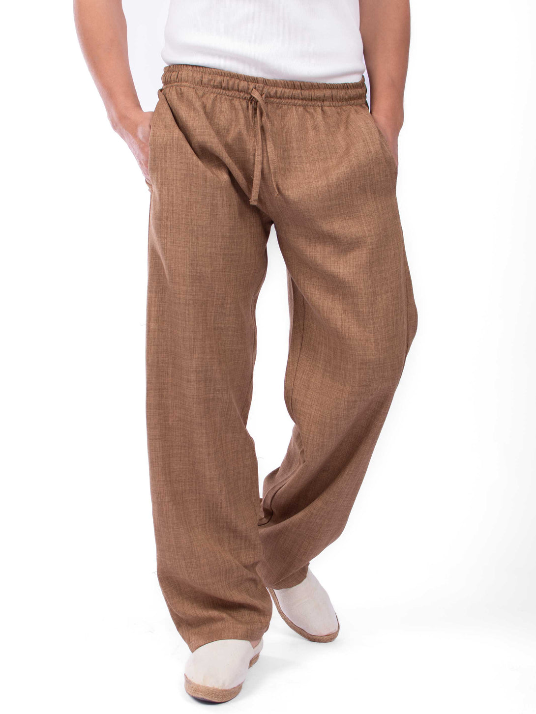Regular-fit trousers in an airy Linen-Like weave. Regular waist with covered elastication and a drawstring, side pockets.