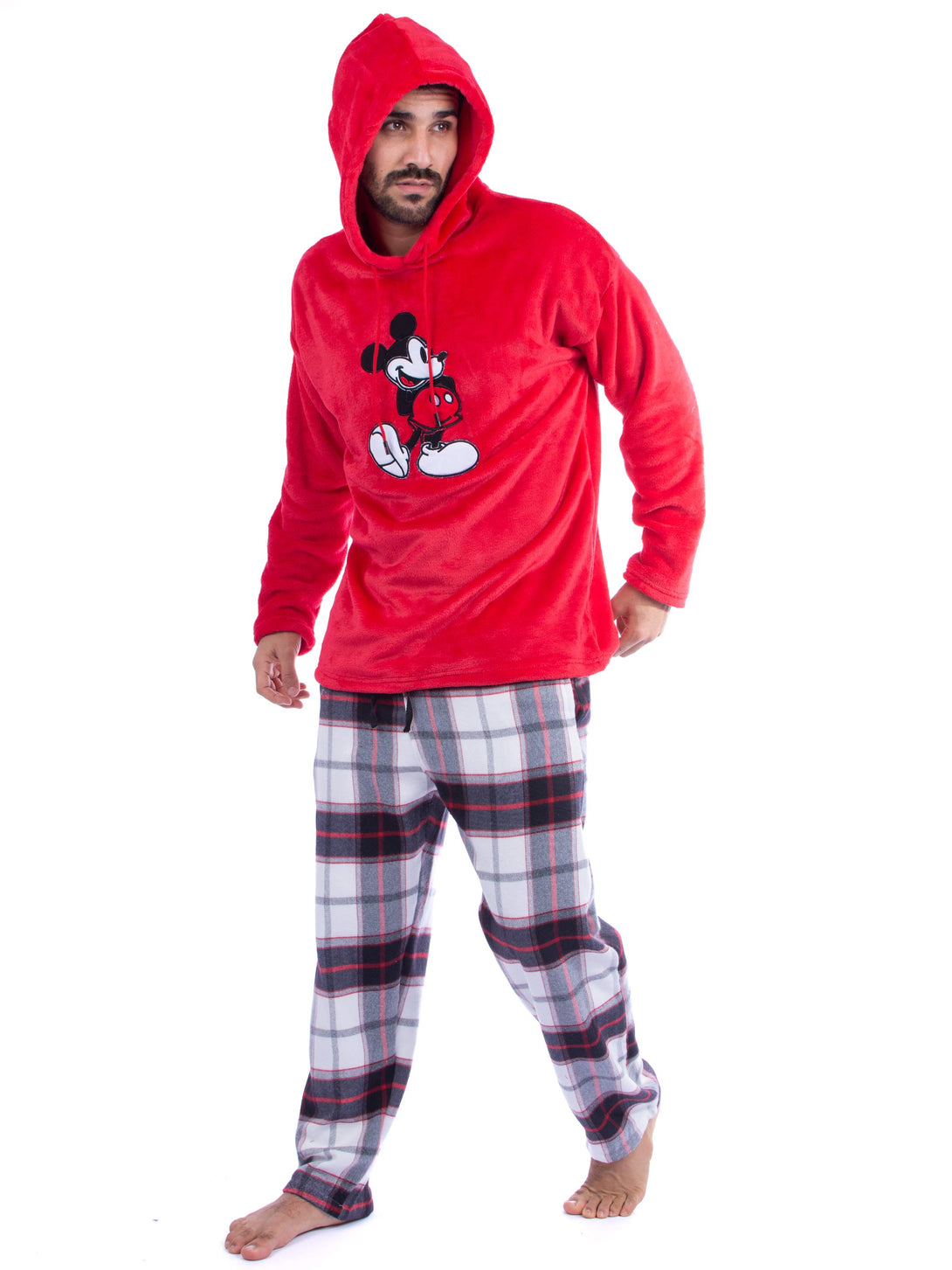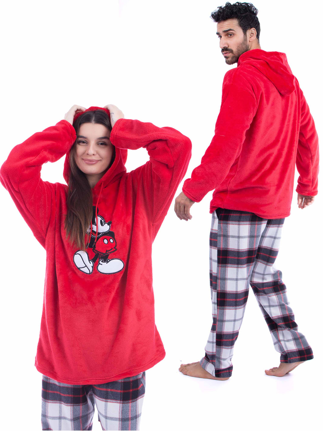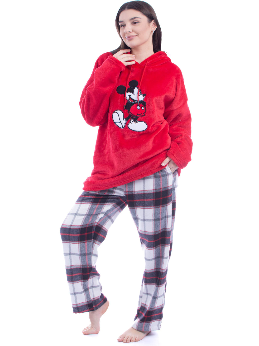 Pyjama set, Polar hoodie Embroidery Mickey mouse. Checkered comfortable straight cut trousers, elastic at the waist with two side pockets