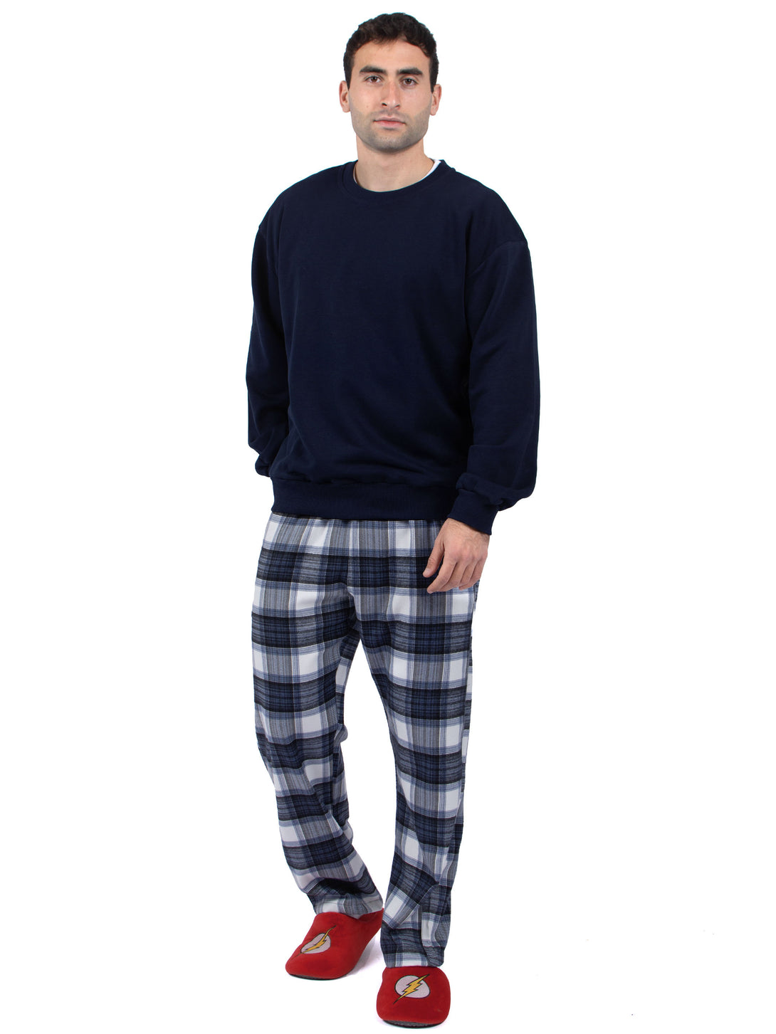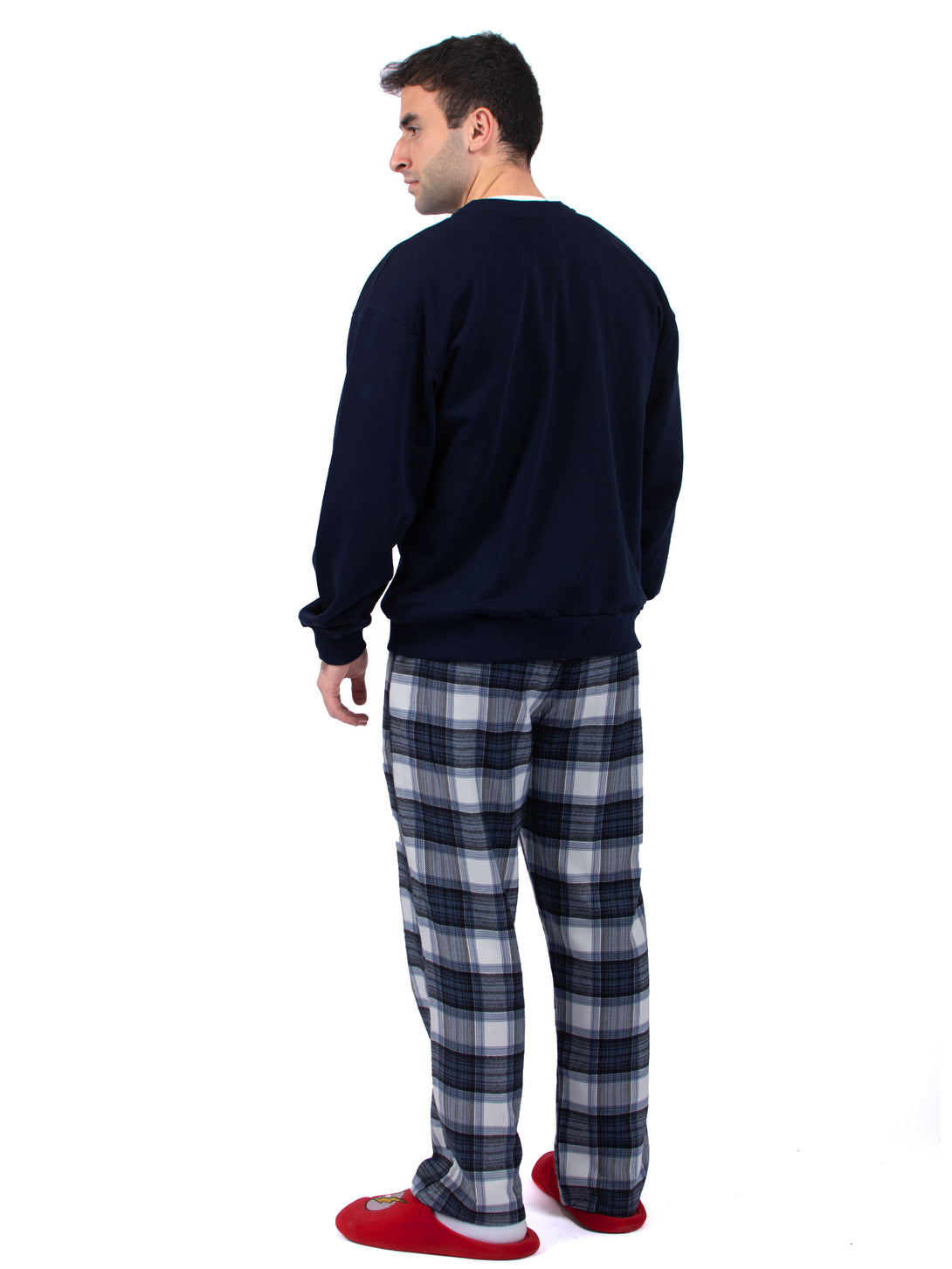 Experience ultimate comfort and style with our navy blue pyjama set. Made from high-quality cotton flannel, this set features long sleeves for a soft, relaxed fit. The straight cut checked print adds a touch of elegance, while the pockets provide convenience for a cozy night's sleep.
