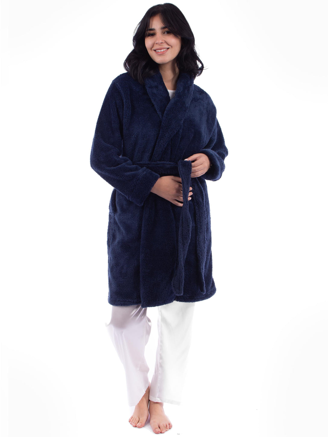 high-quality fleece robe, one pocket on side, perfect for home relaxation moments. It is the perfect gift for her.
