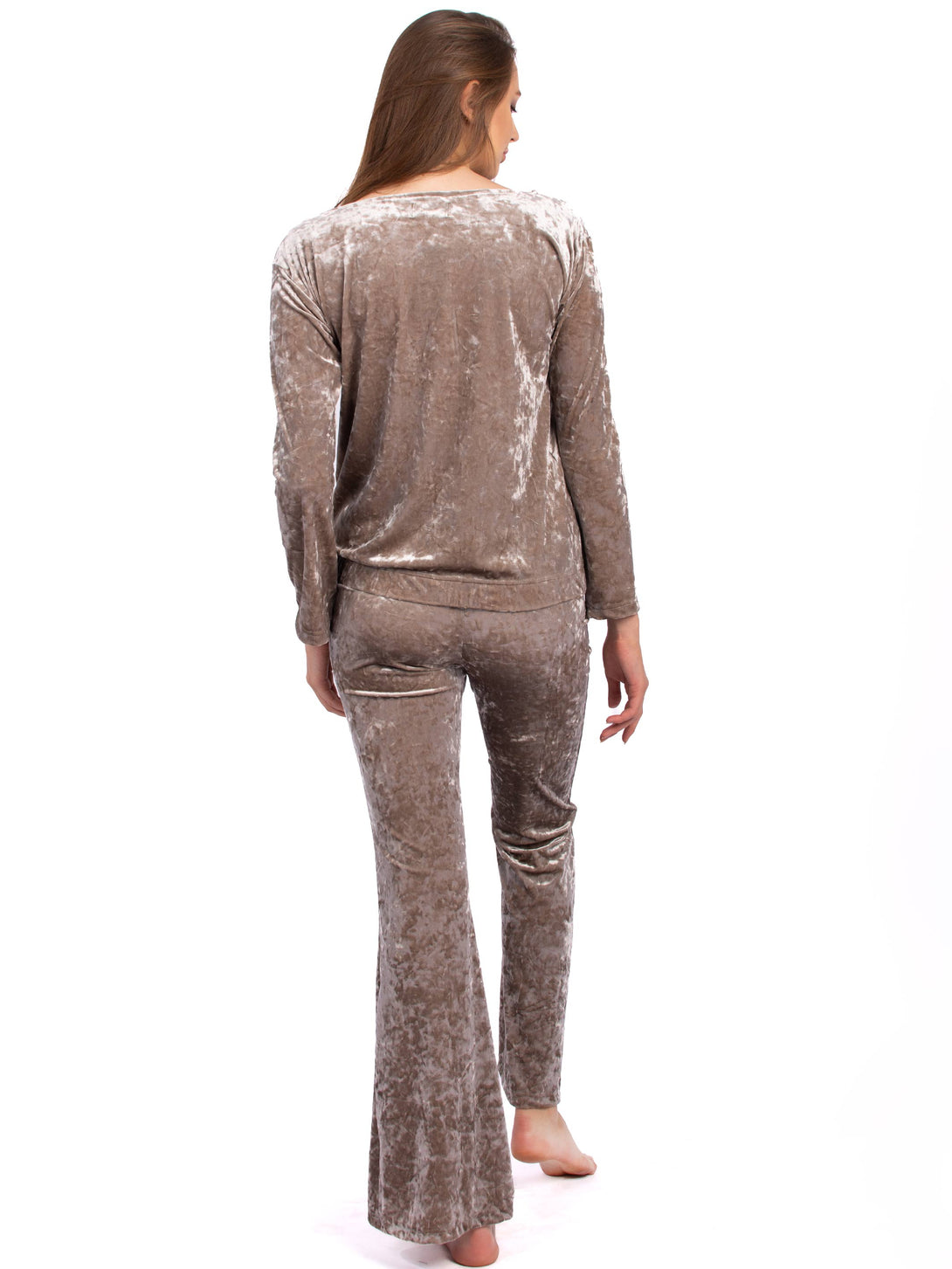 Ice Velvet set - off shoulder Top Sabrina neckline with wide long sleeve and elastic on waist, with a matching high-waist bottom wide leg (Charleston pants)