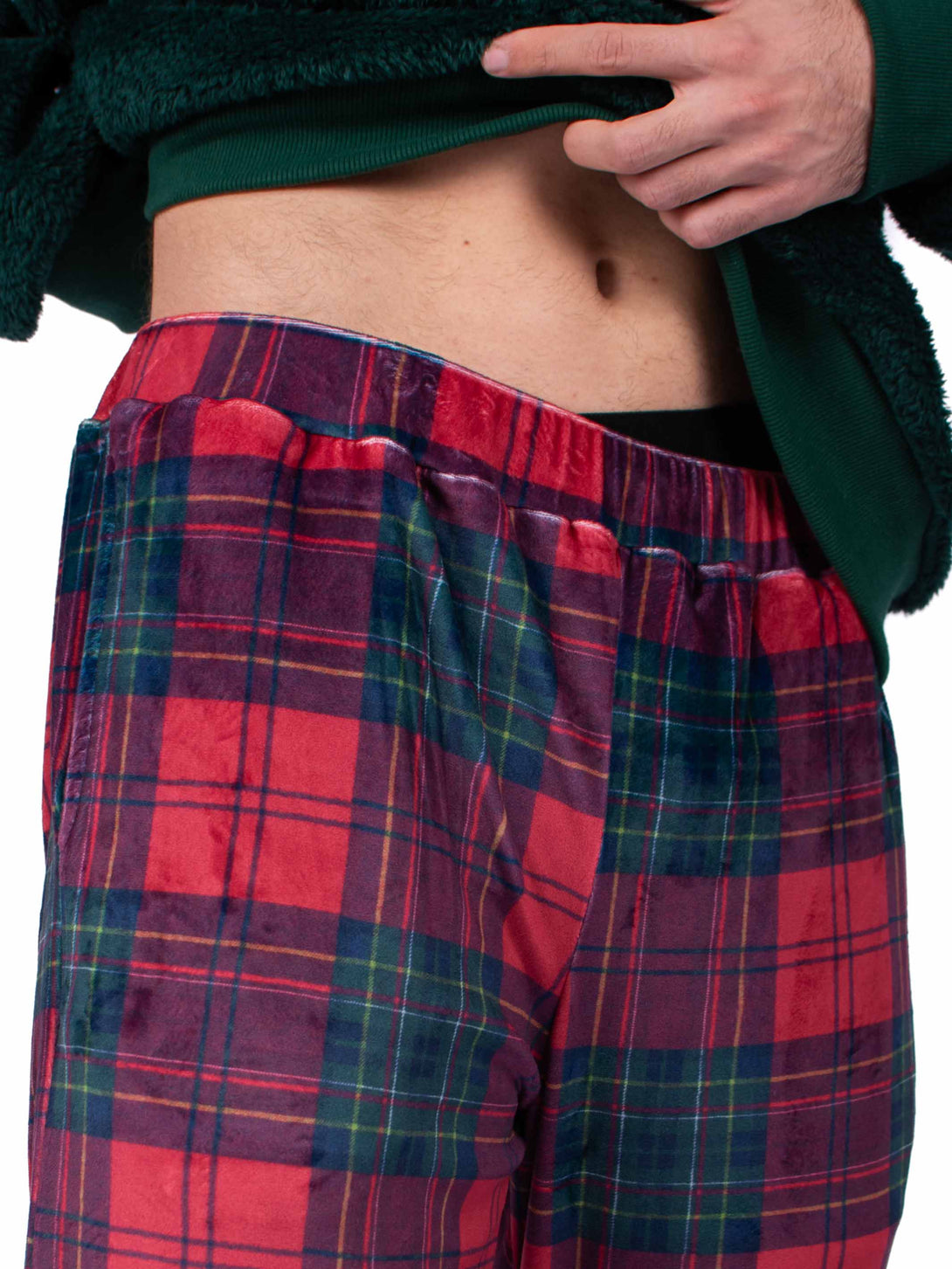 Comfortable checkered pattern velvet pants, straight cut with elastic in the waist with two side pockets