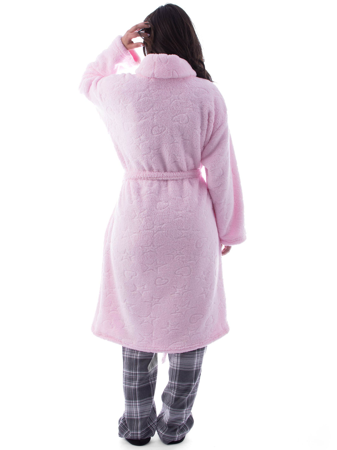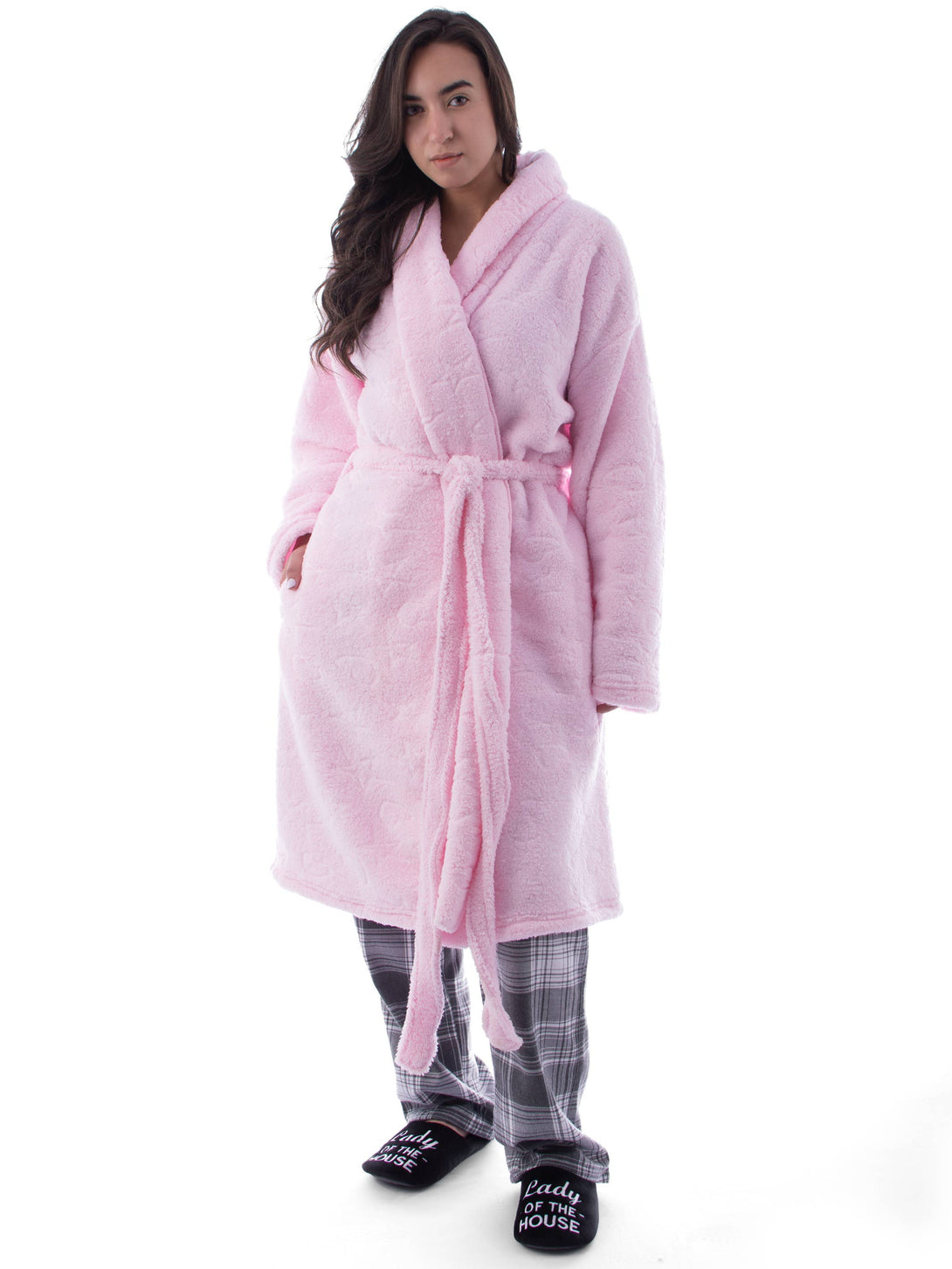 A Fluffy, high-quality fleece robe, two pockets on sides, perfect for home relaxation moments. It is the perfect gift for her.