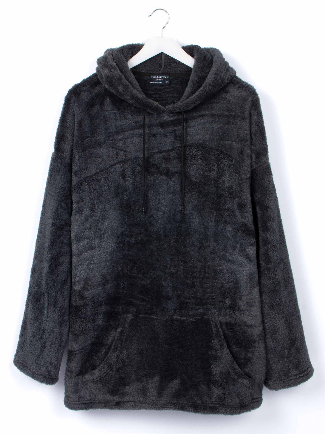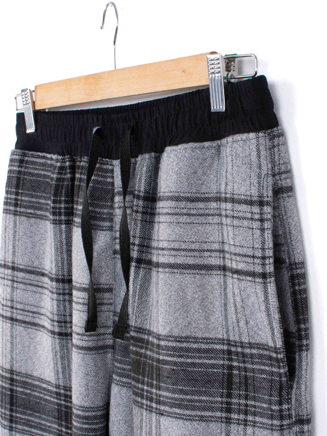 Pyjama set, Fleece hoodie with front big pocket. Checkered comfortable straight cut trousers, elastic at the waist with two side pockets
