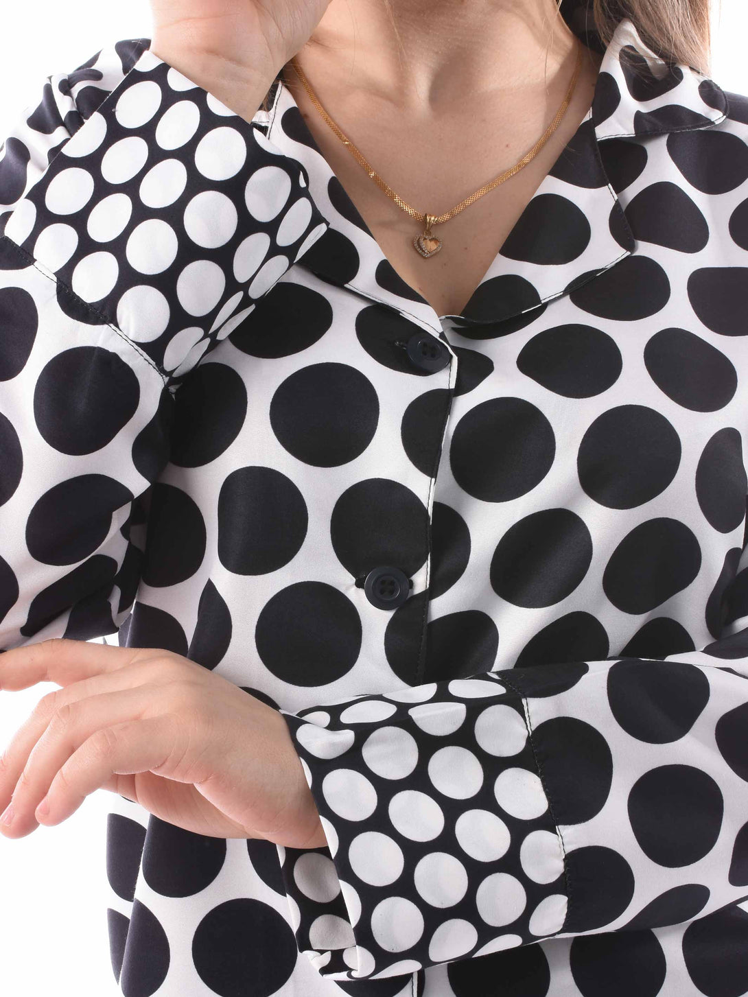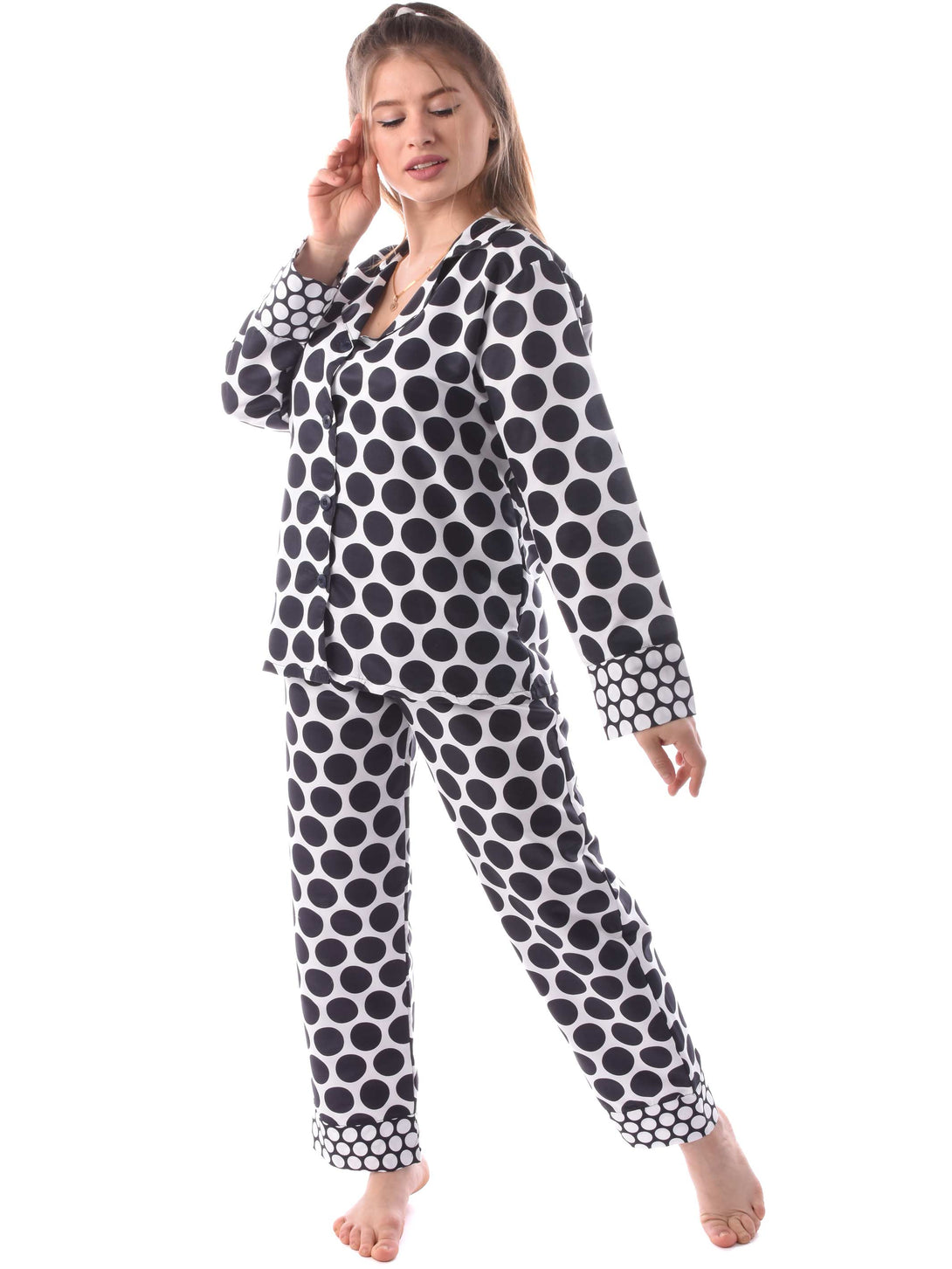 Pyjama Set, Shirt with V-neckline and buttons down the front, chest pocket. Bottoms with an elasticated waist and straight legs.