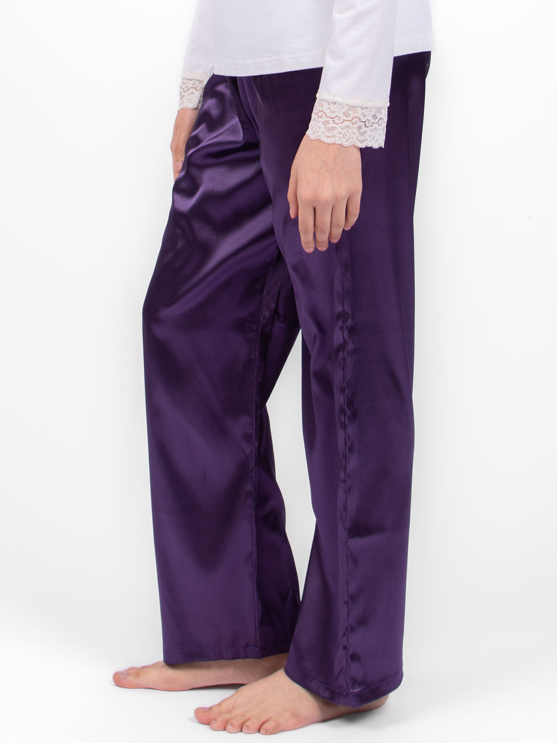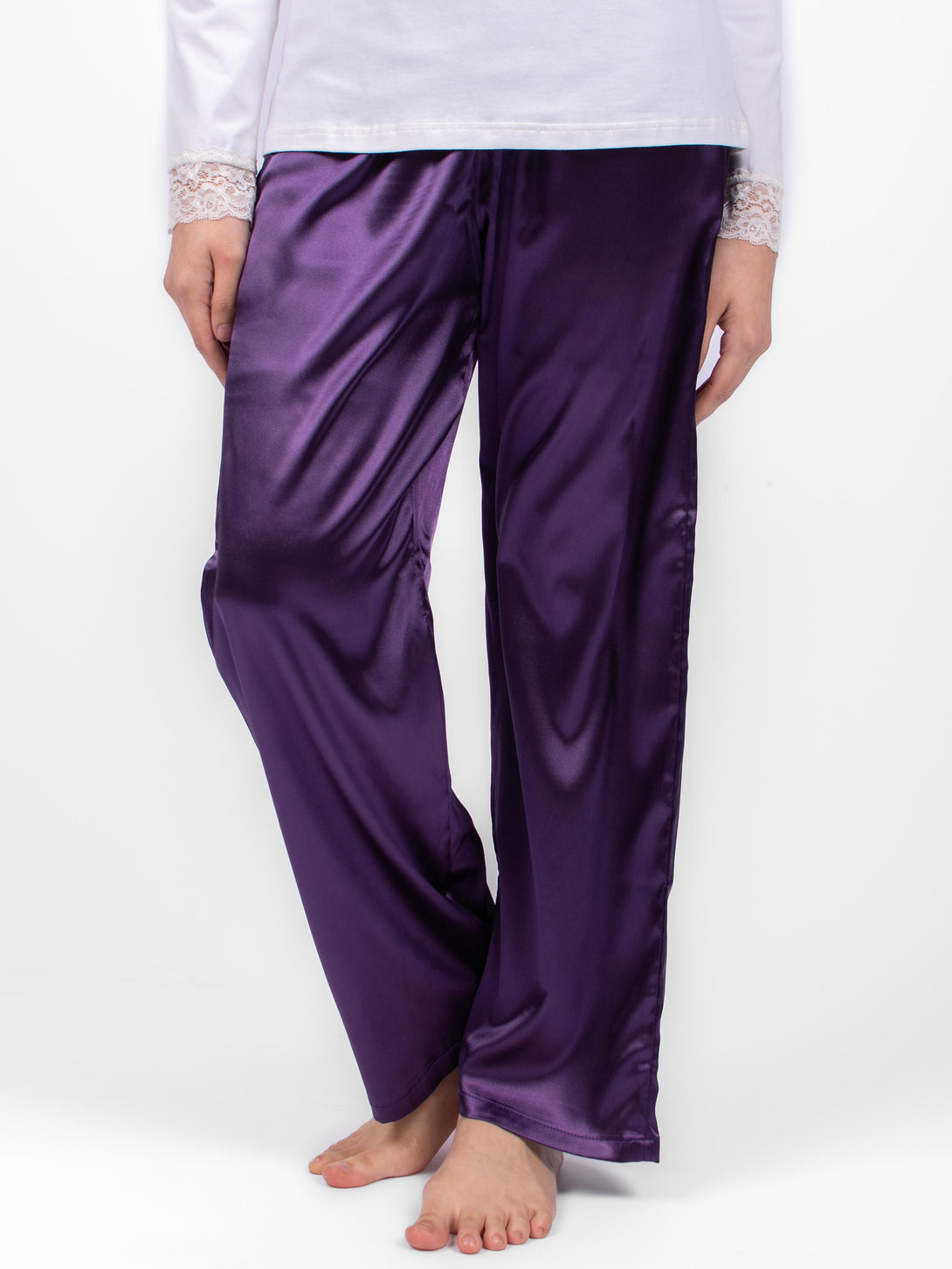 Pajama pants in softly draped satin, Pants with an elasticized and straight wide legs.