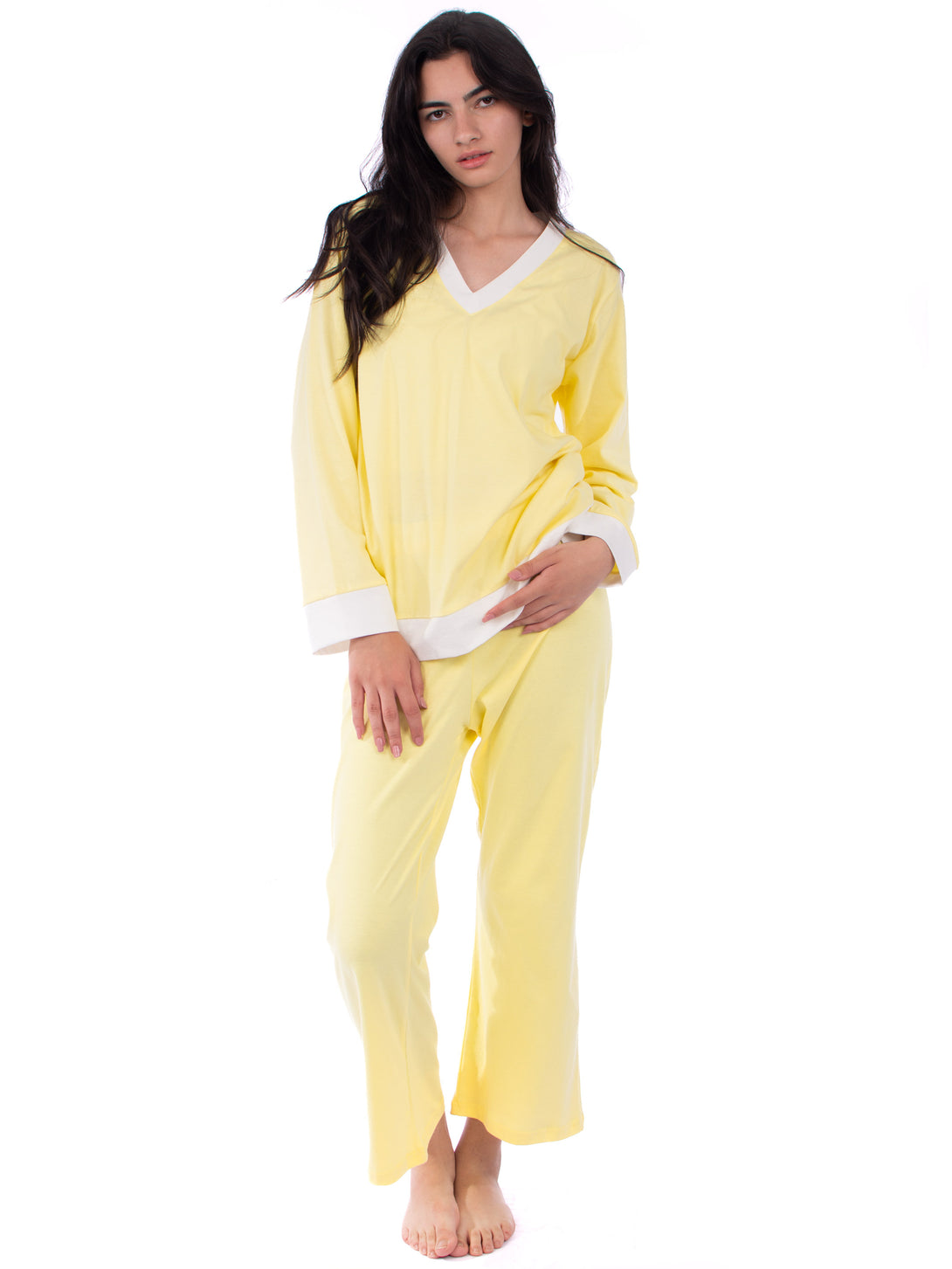 Pyjama set, Shirt with V-neckline. straight legs Pants with an elasticated waist.