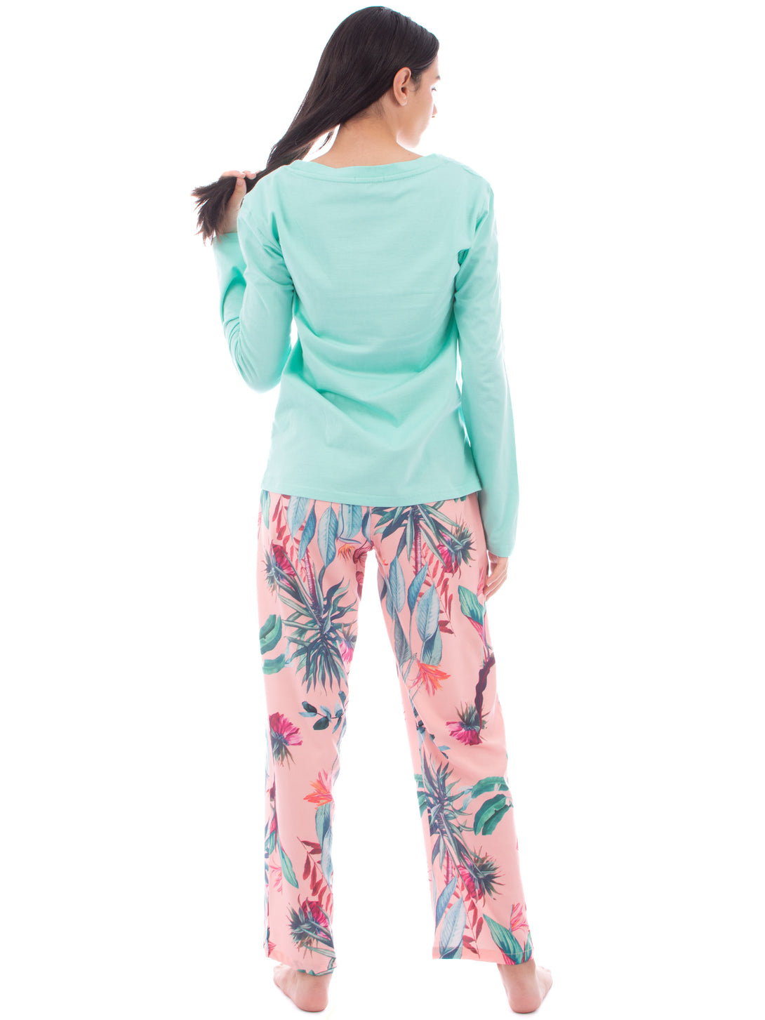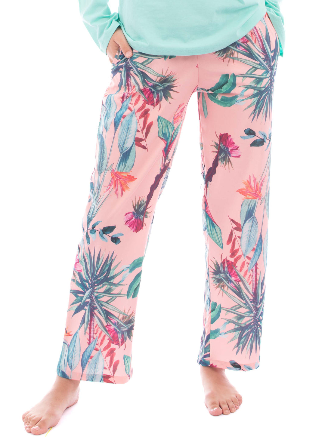 Slim fit long sleeve shirt, with straight cut pants Tropical pattern with two side pockets.