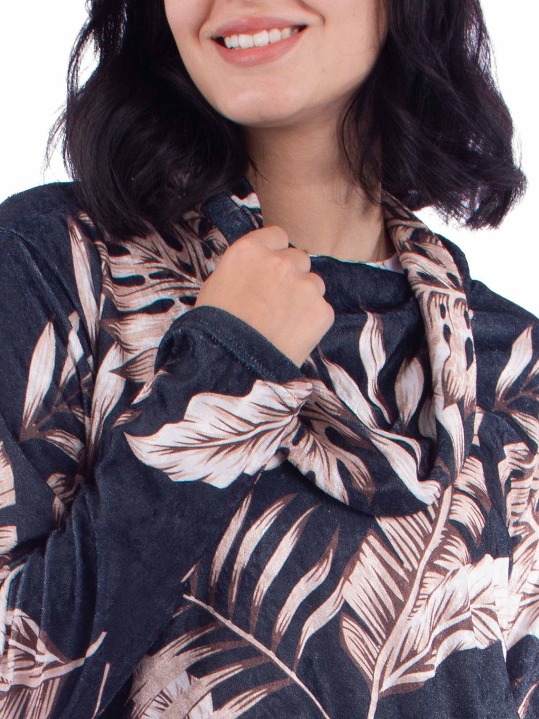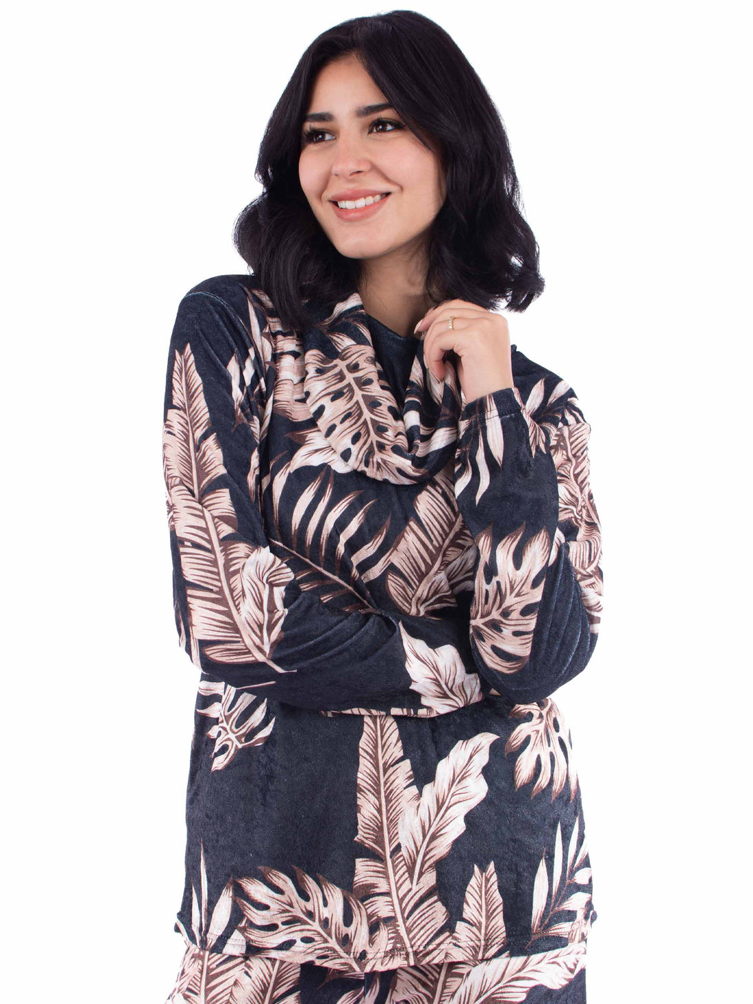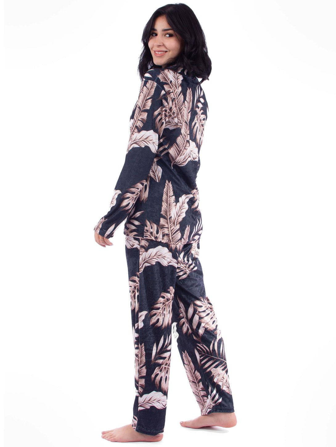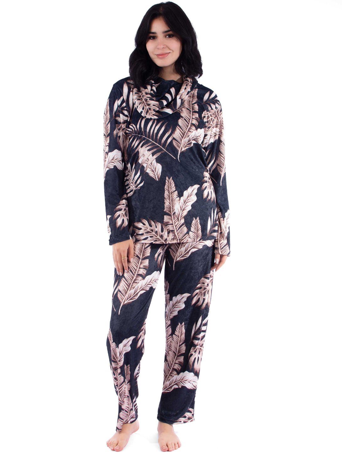 Printed velvet Pyjama set, Long sleeve with high-collar, straight legs Pants with an elasticated waist.