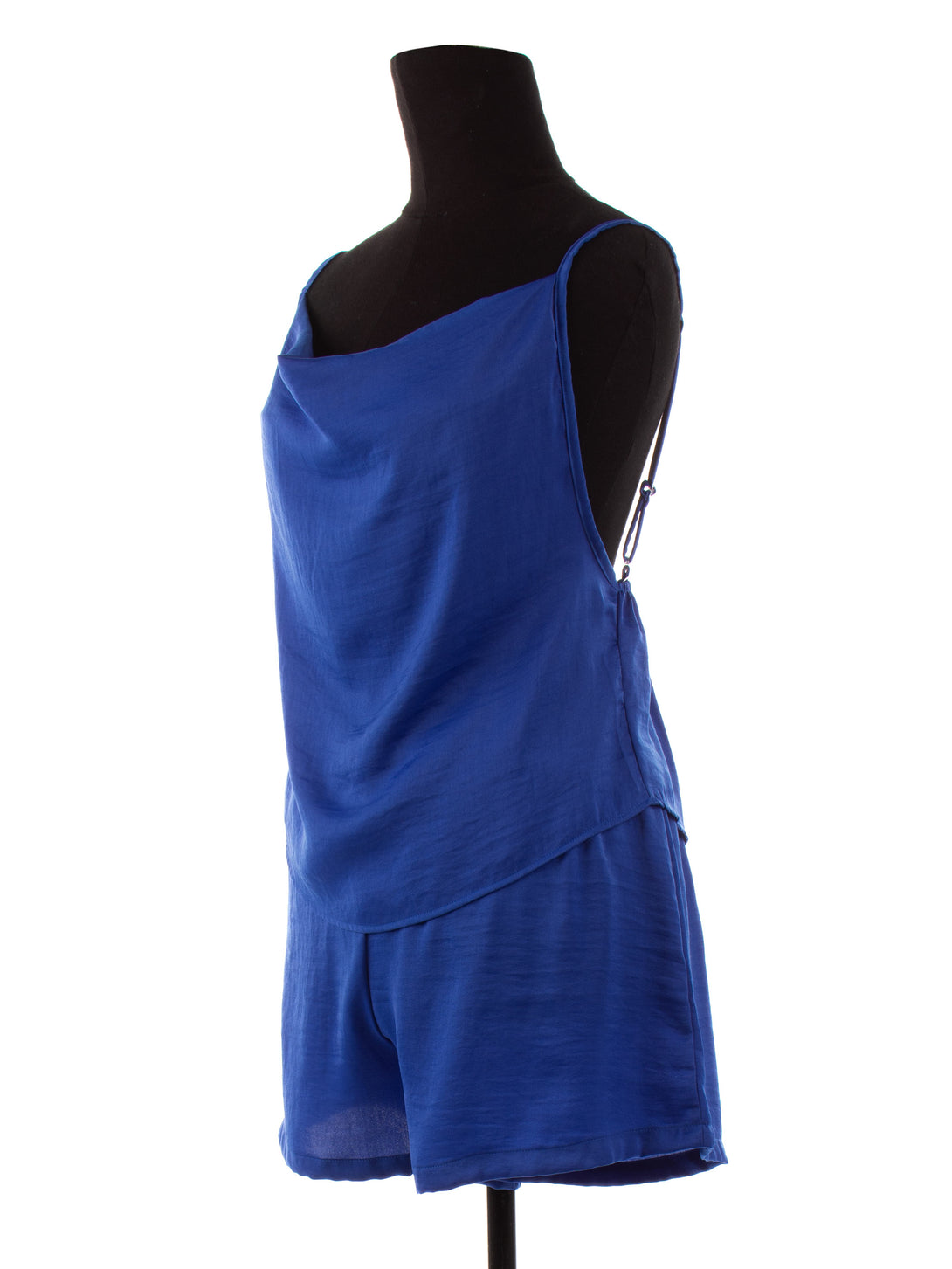 Cami & short set, Draped neckline, narrow shoulder straps adjustable spaghetti shoulder straps that cross at the back, and a low-cut back. Shorts with covered elastication at the waist and overlocked hems.
