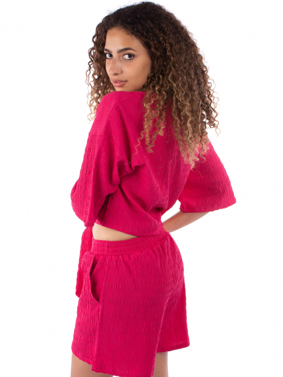 Fuchsia Tie front shirt & short PJ set