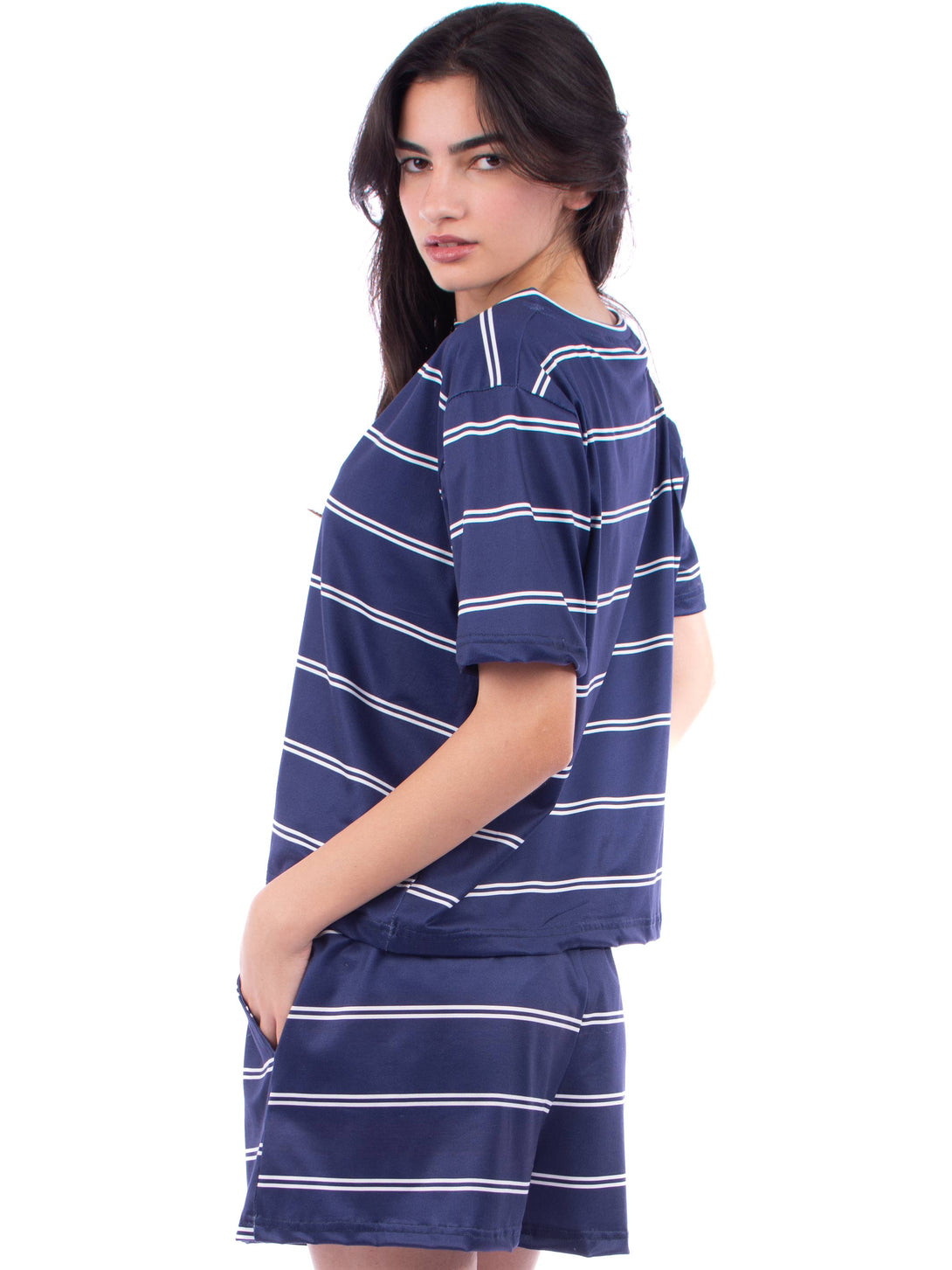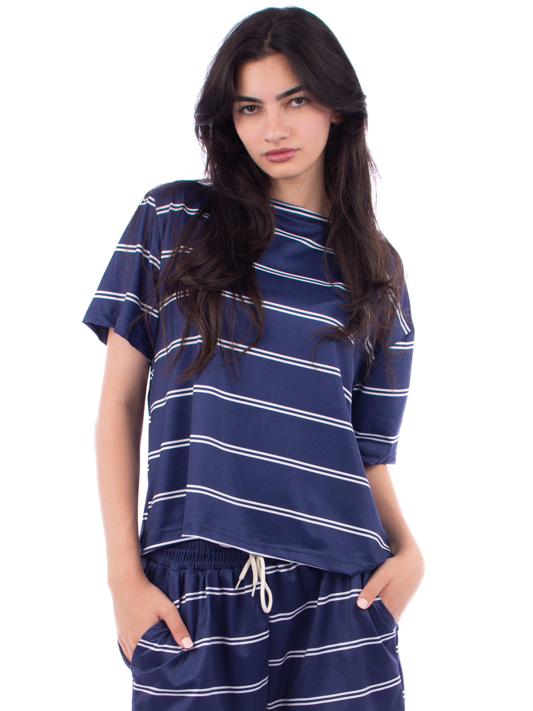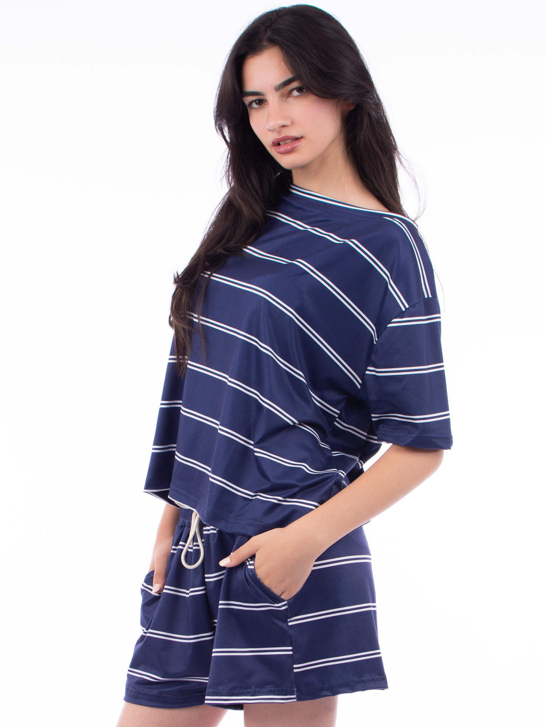 Boxy T-shirt in jersey with a wide round, rib-trimmed neckline, dropped shoulders with loose fit shorts, High waist with covered elastication and a drawstring, and discreet pockets in the side seams.