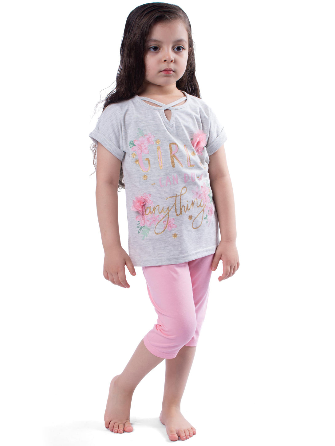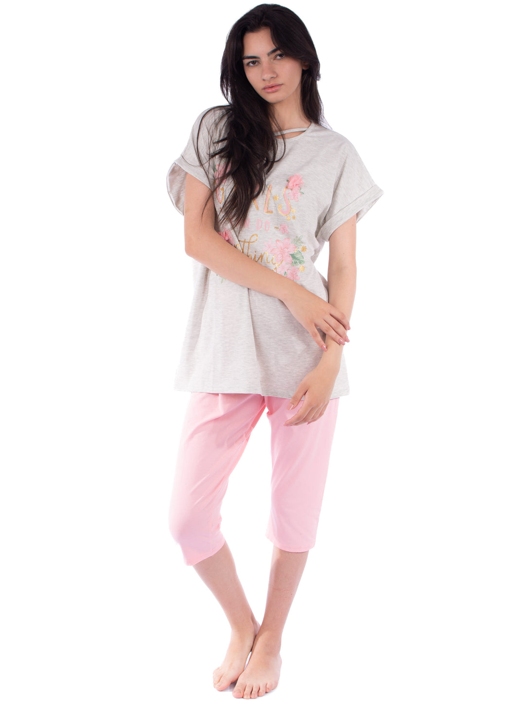 Pyjama crew neck front cross t-shirt printed, with slim fit bermuda.