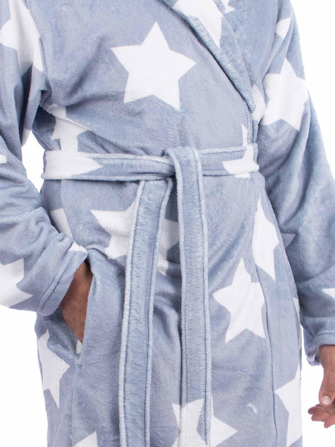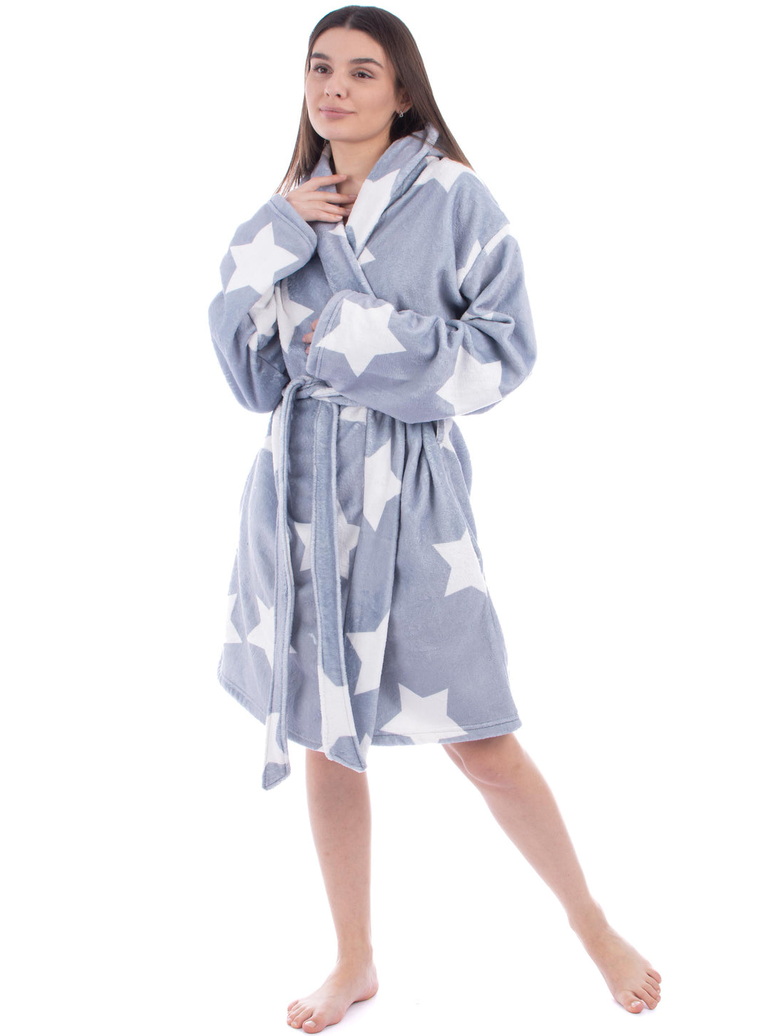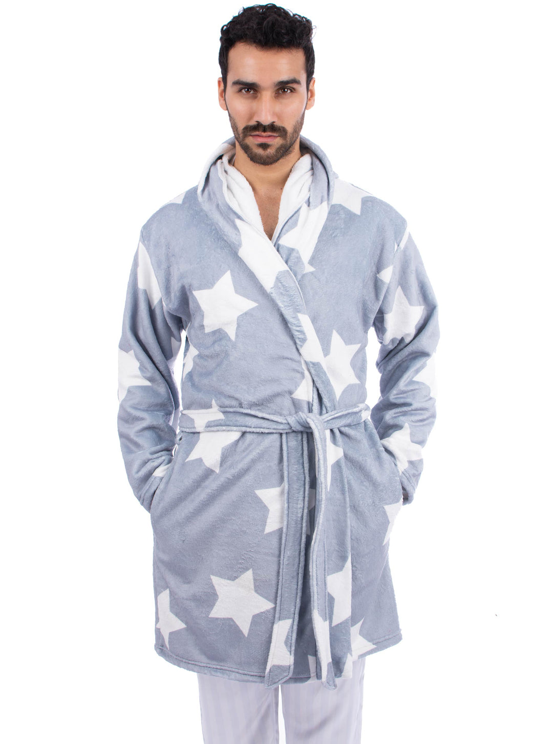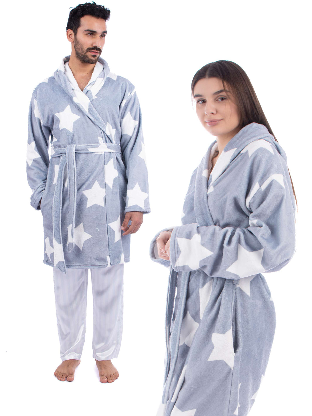 A soft, high-quality fleece robe, with hood and two pockets on sides, perfect for home relaxation moments. It is the perfect gift for her or him.