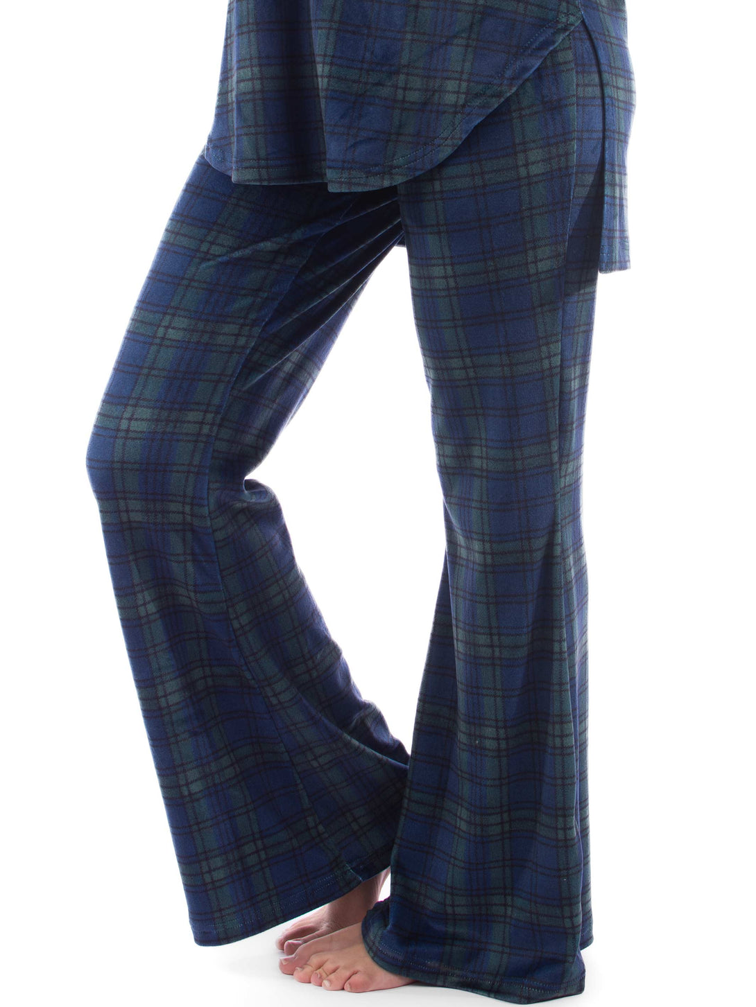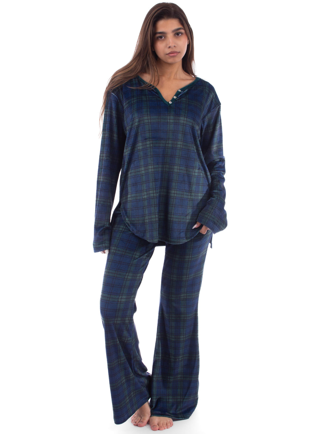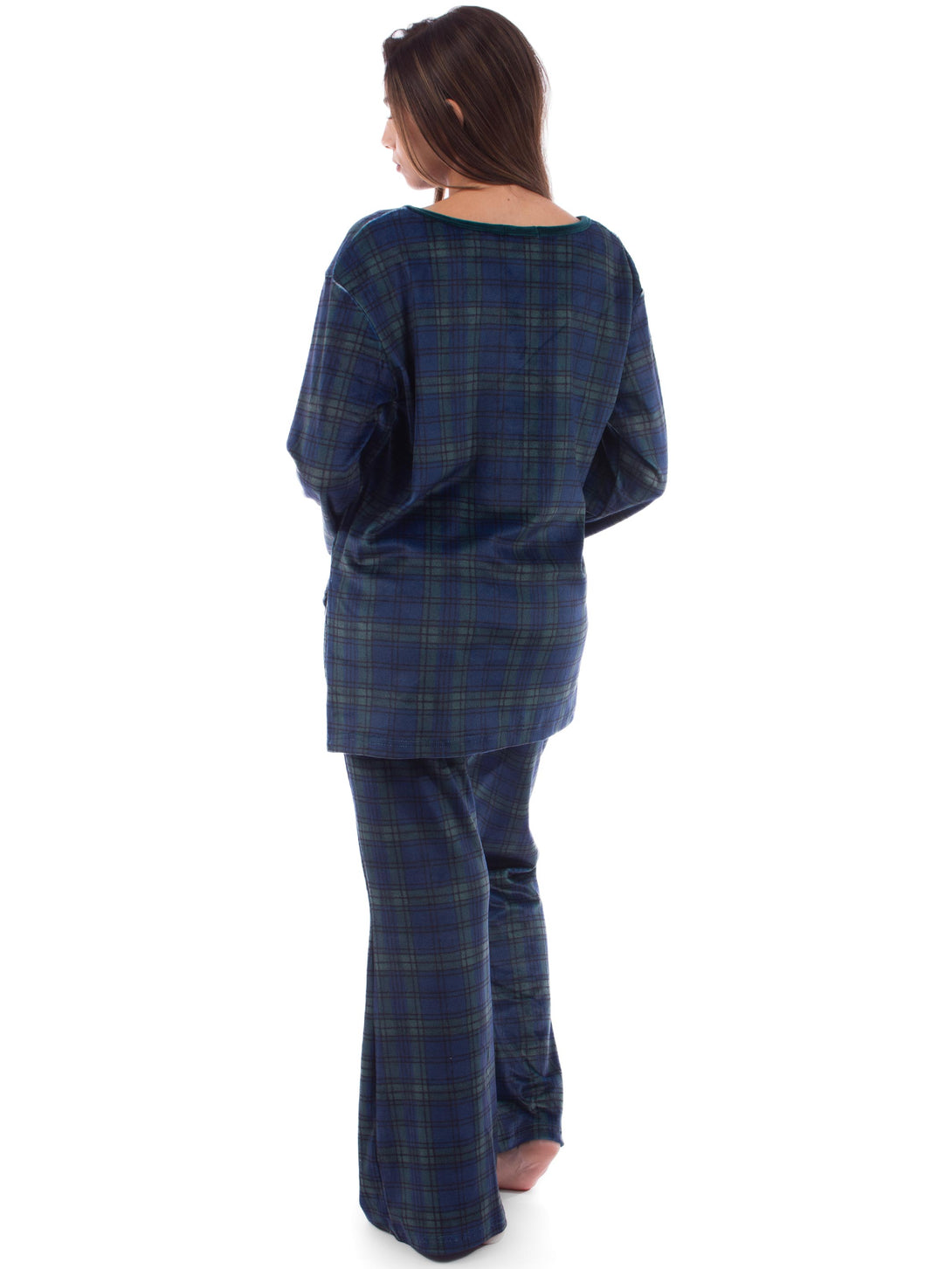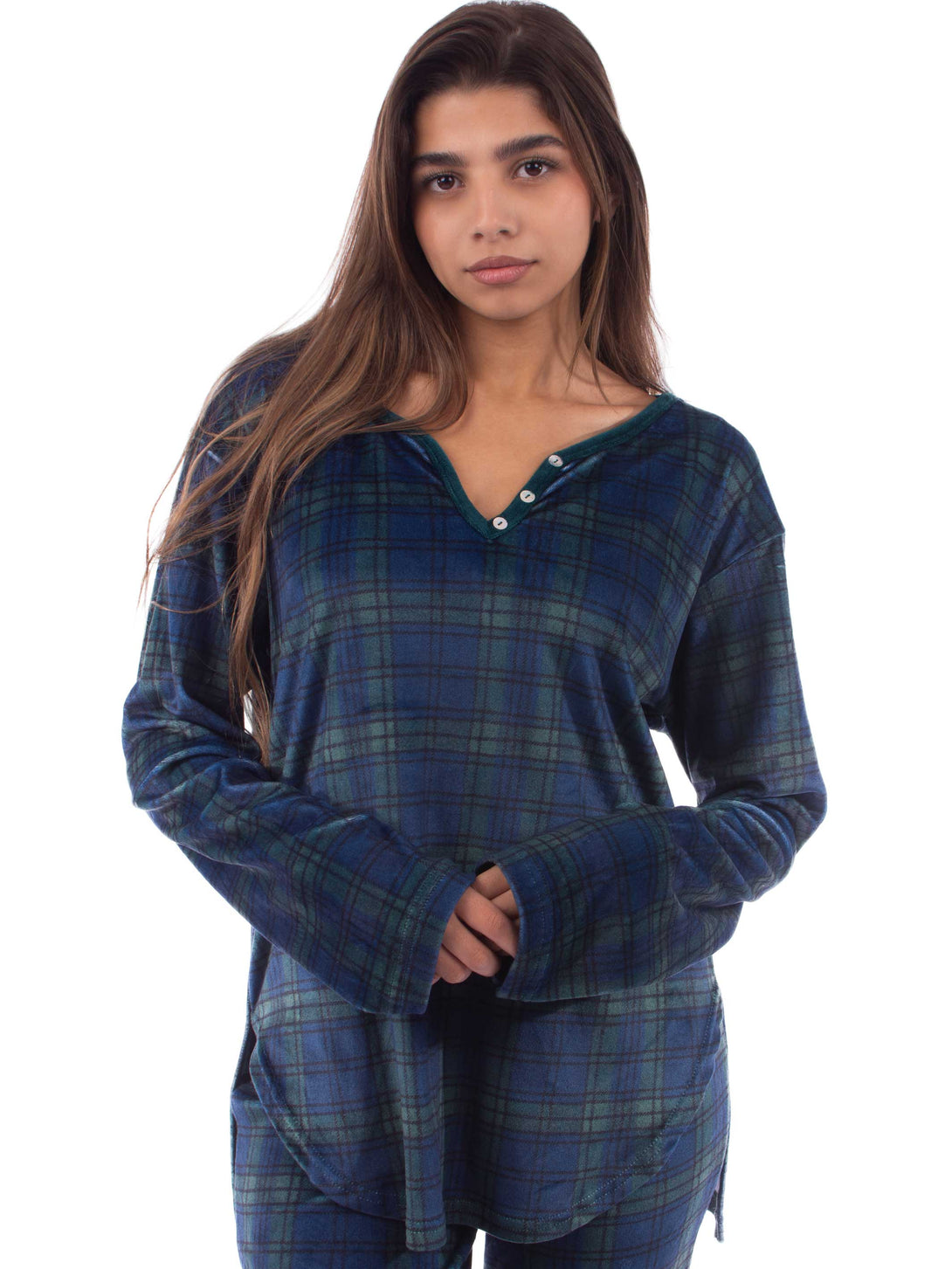 Velvet checkered pattern soft brushed inside, Hi-Lo Long sleeves & wide leg cut pants.
