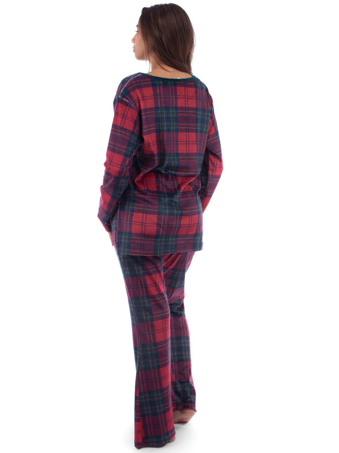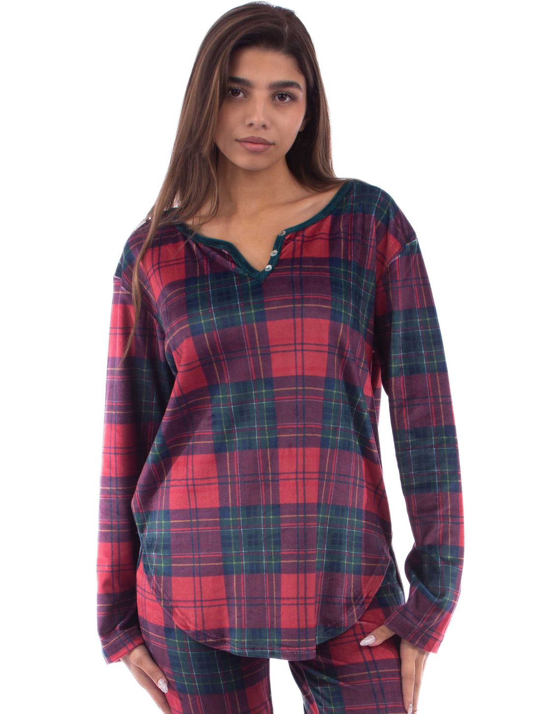 Velvet checkered pattern soft brushed inside, Hi-Lo Long sleeves & wide leg cut pants.