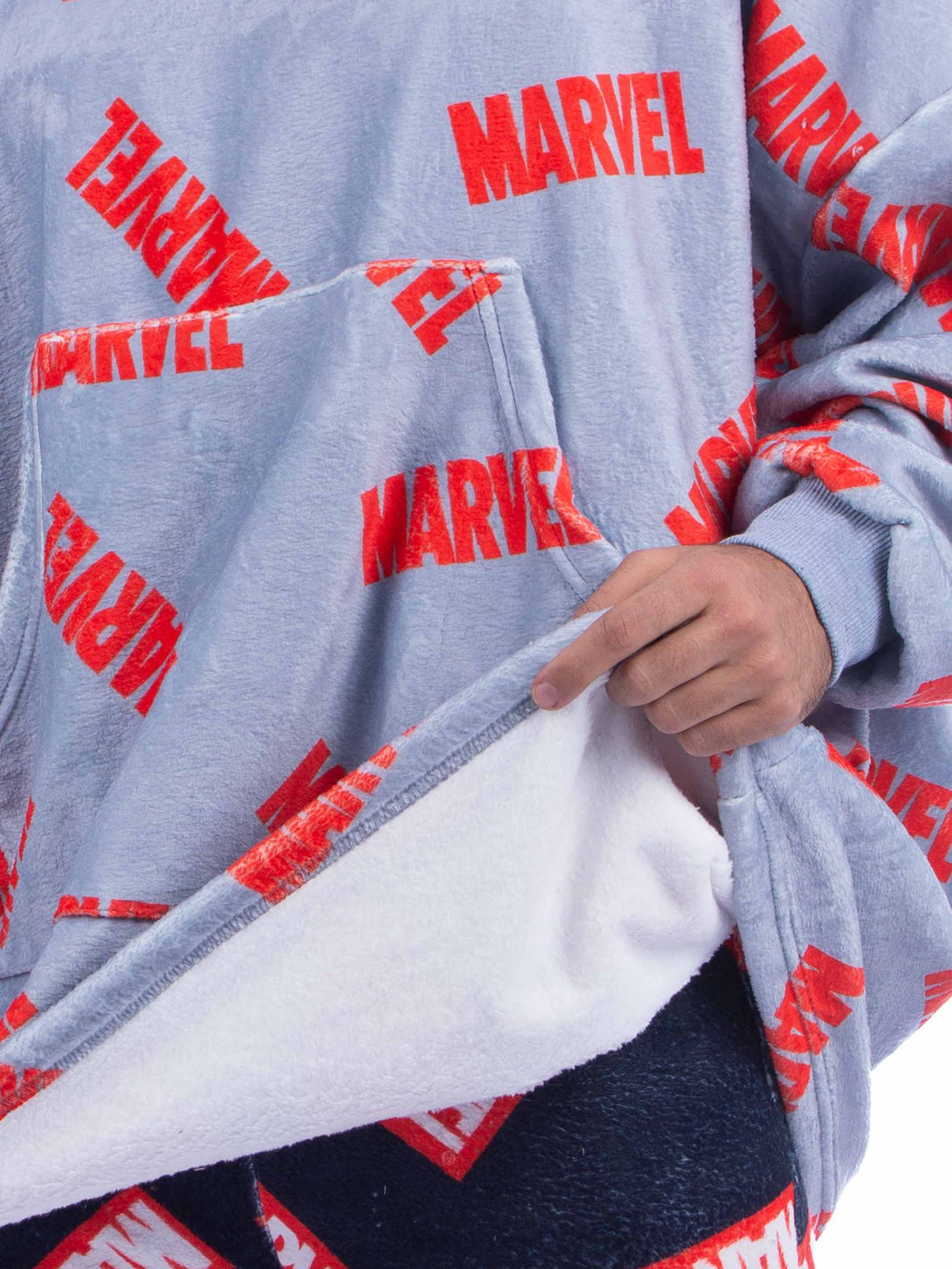 MARVEL blanket hoodie to keep you warm and enjoy all the comfort. A fleece blanket With extra-large central pocket, super soft use inside and outside
