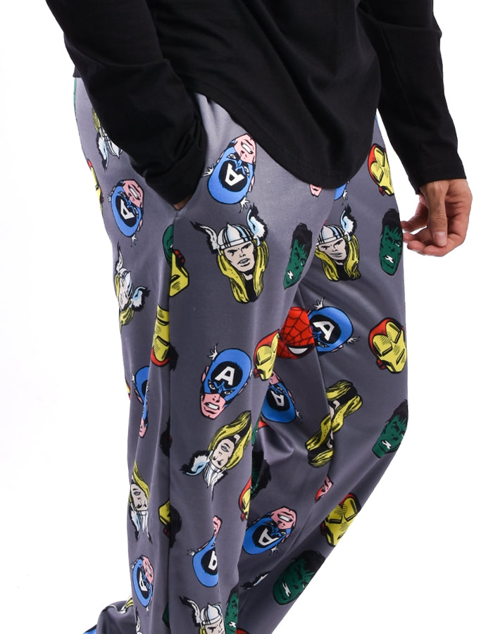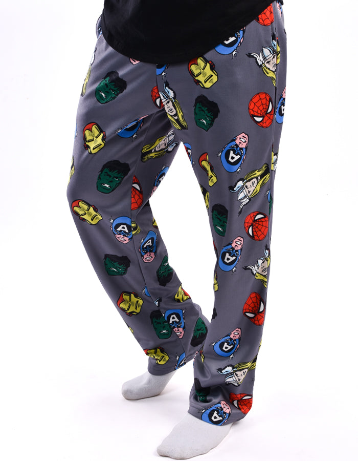 Relax in style with these comfy lounge pants featuring all-over prints of your favorite Marvel heroes—Iron Man, Spider-Man, Hulk, Thor, and Captain America. Soft fabric and an elastic waistband make them perfect for everyday lounging wear.
