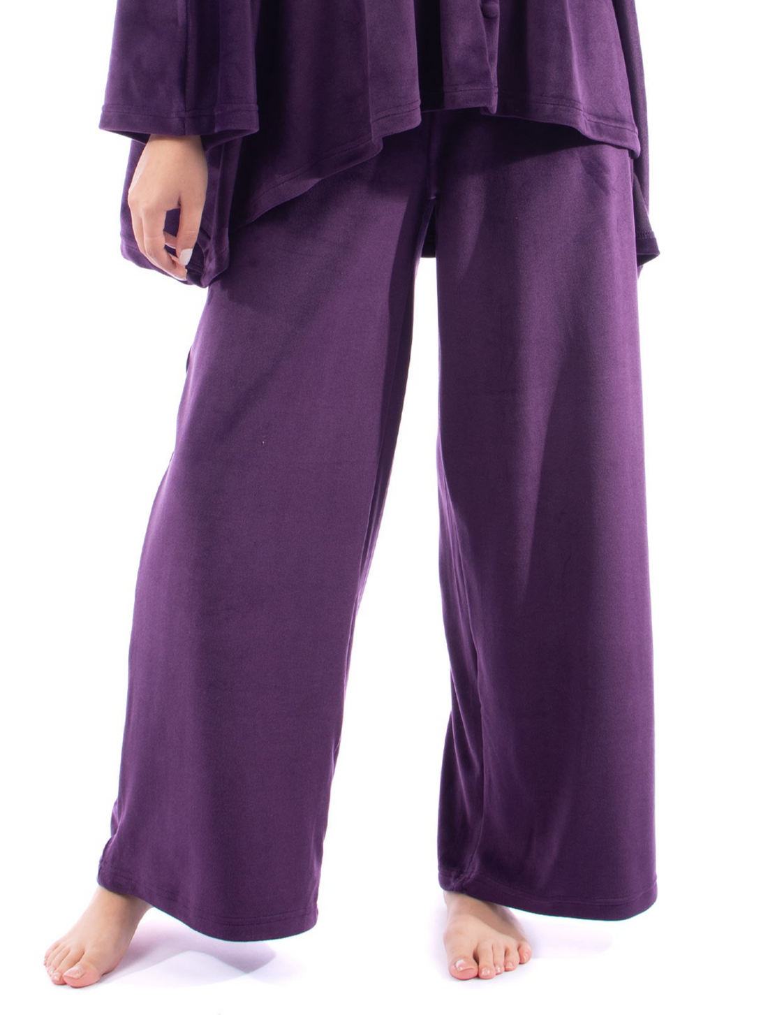 Brave the winter cold with these purple wide-leg velvet pants. Ultra soft against your skin, they are the homewear revolution your wardrobe has been craving. Embrace the plush texture that dares to keep you warm