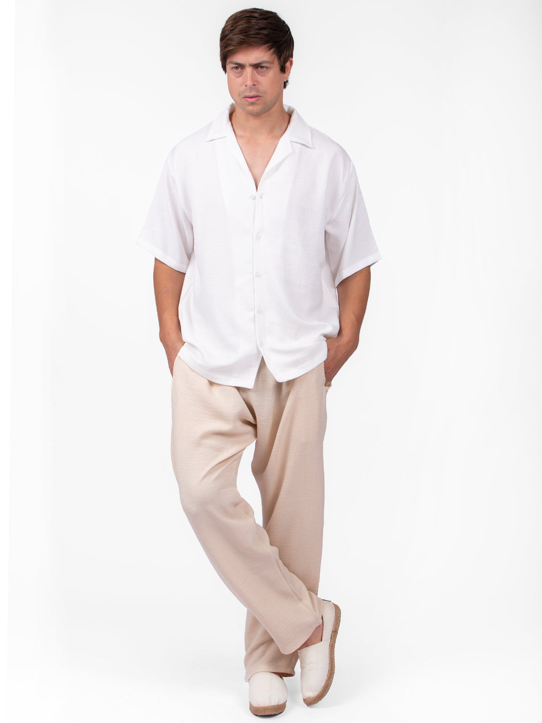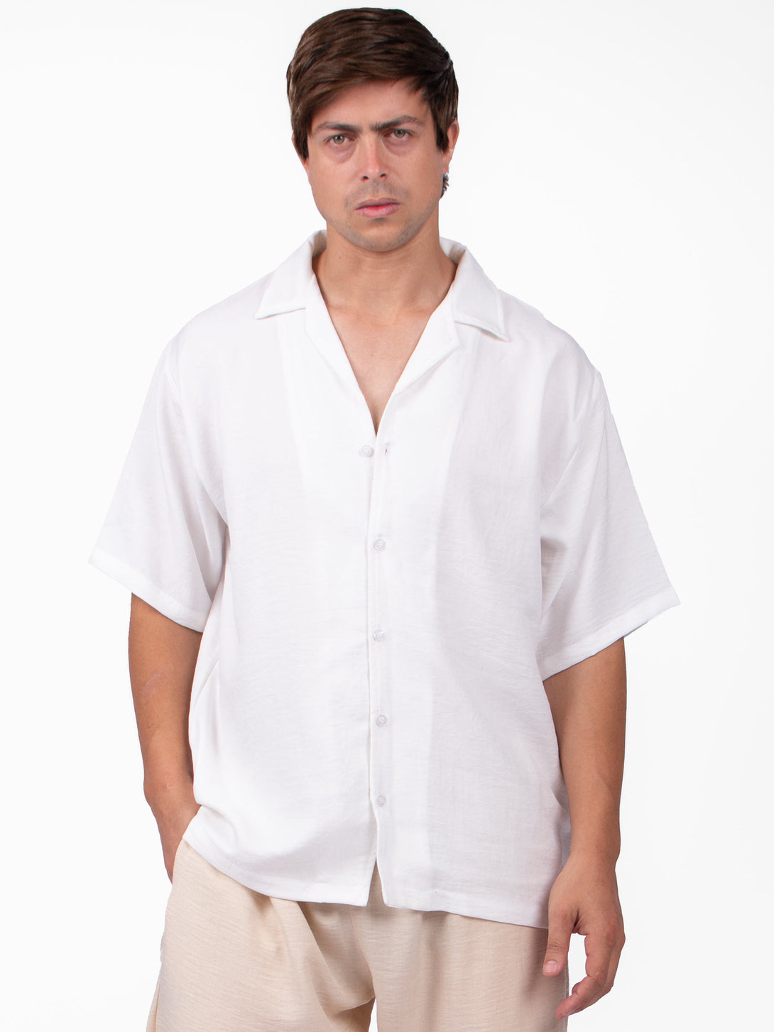 WHITE LINEN- LIKE SHIRT