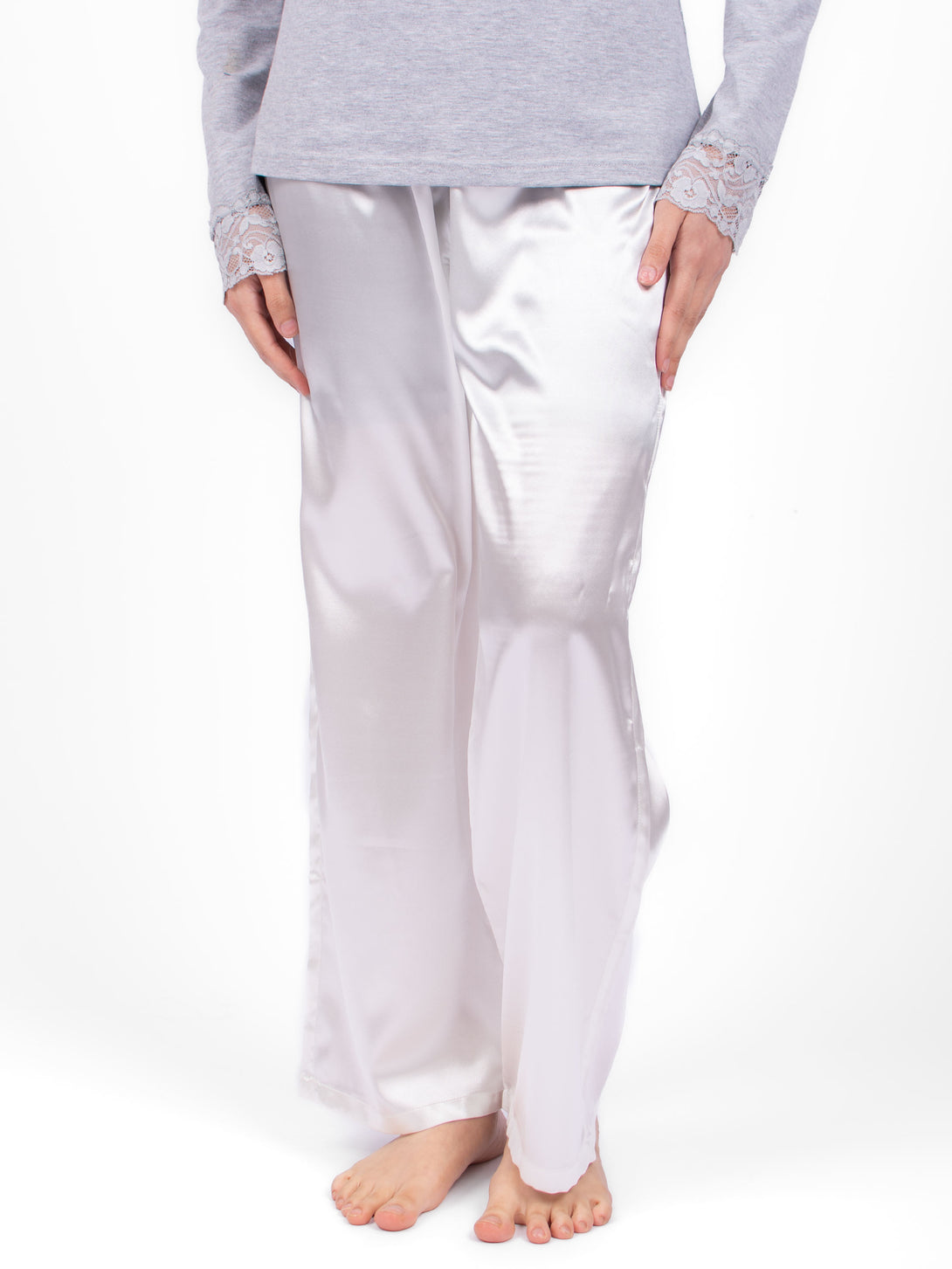 Pajama pants in softly draped satin, Pants with an elasticized and straight wide legs.