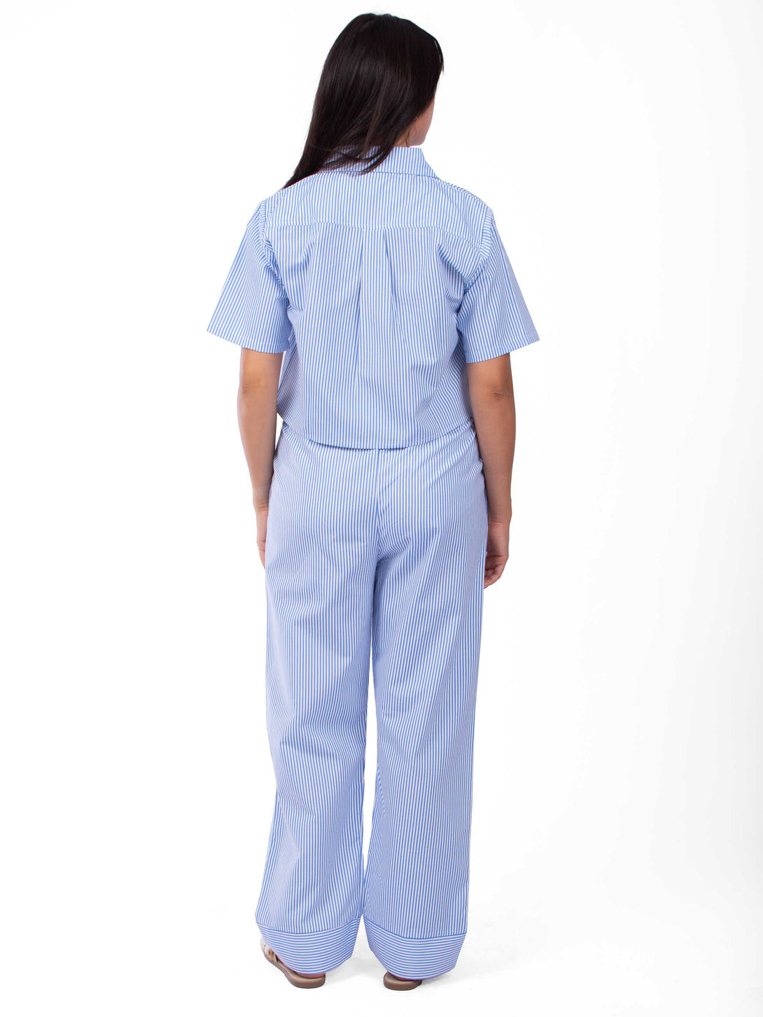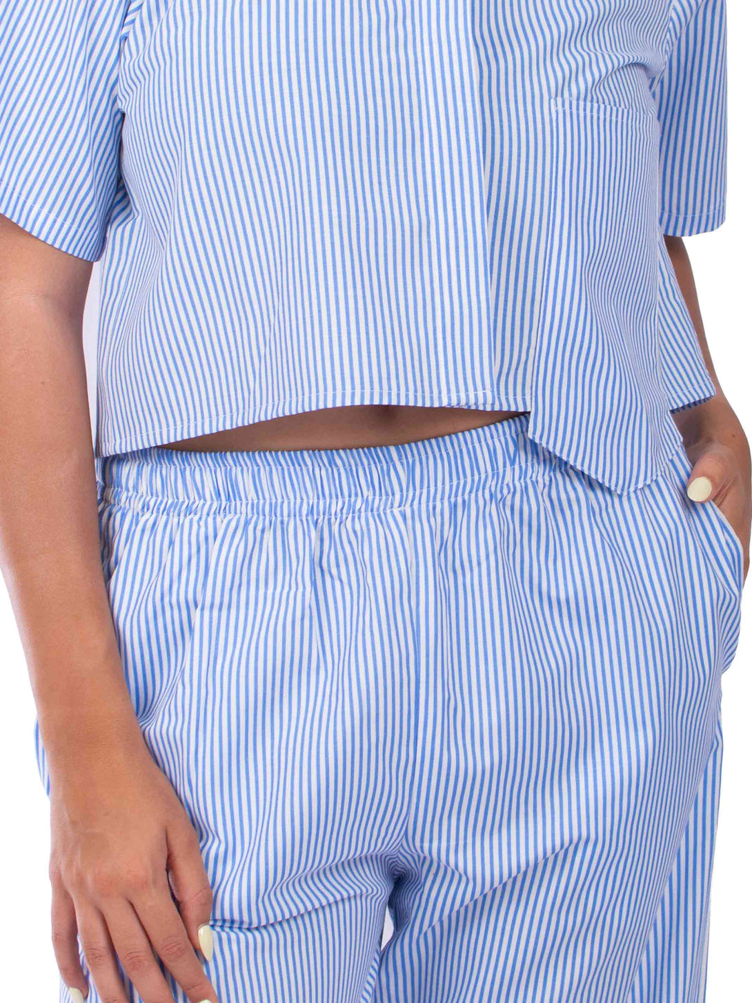 Set of Cropped boxy striped Shirt with dropped shoulders with buttons down the front, wide sleeves. Loose-fit high waist pants covered elastication and discreet pockets in the side seams.