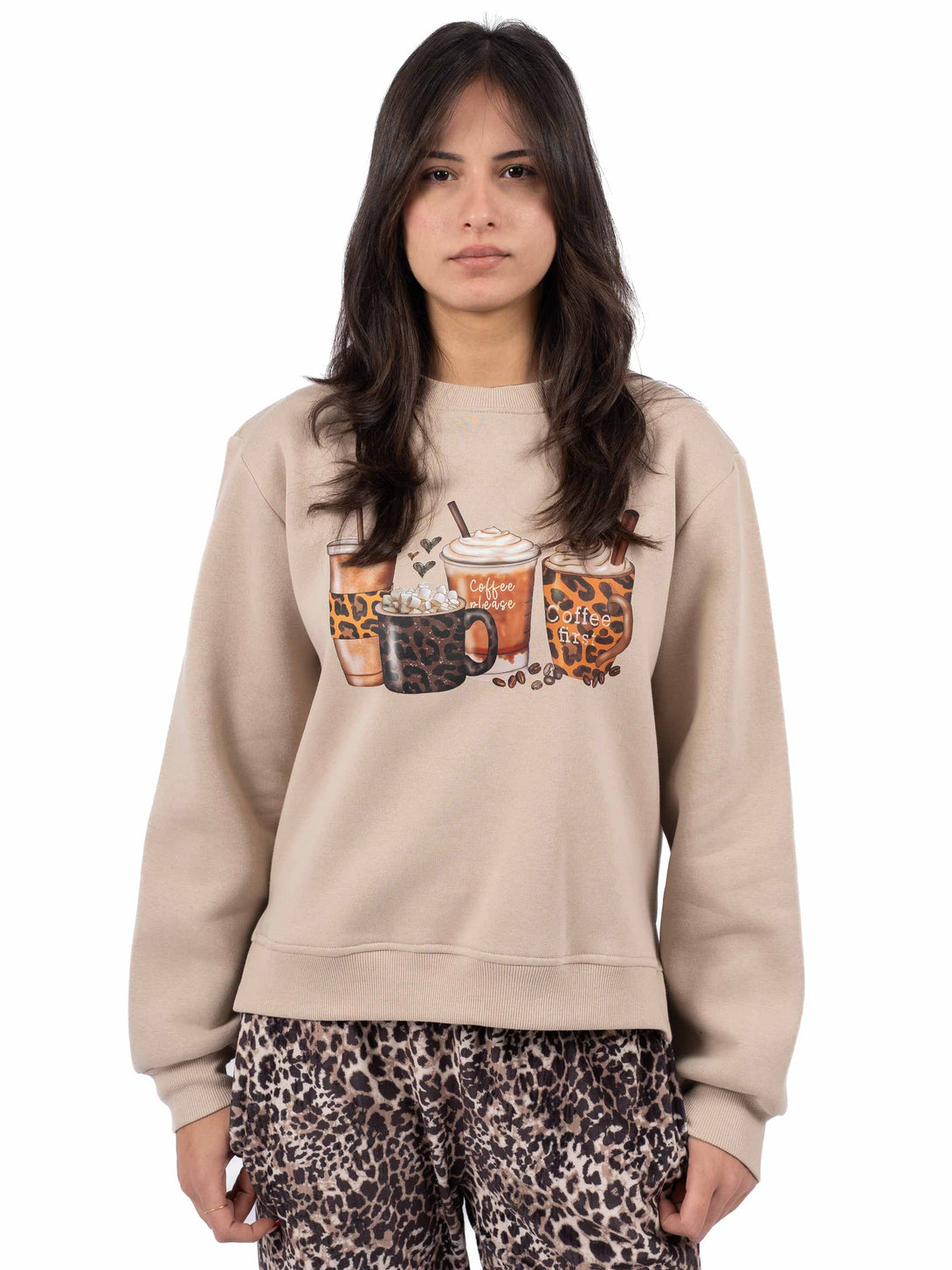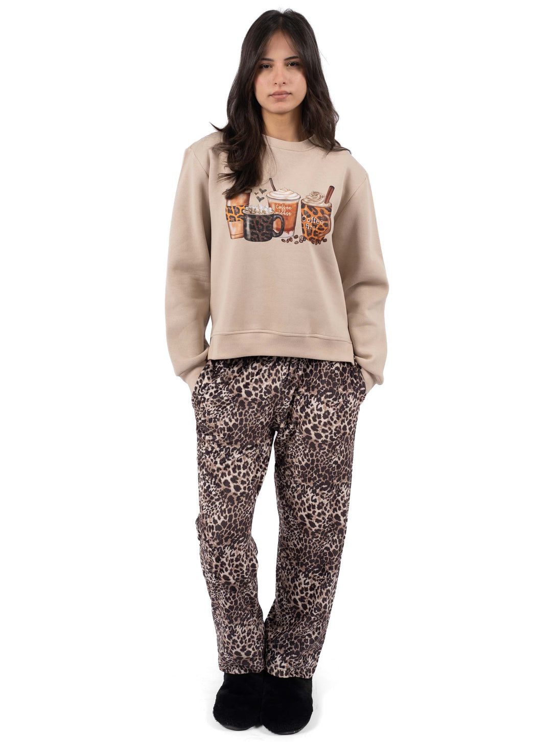 Pyjama for Coffee lovers, a warm, well-made, soft, durable, and reasonably stylish cotton melton sweatshirt with Fleece pants with two side pockets.